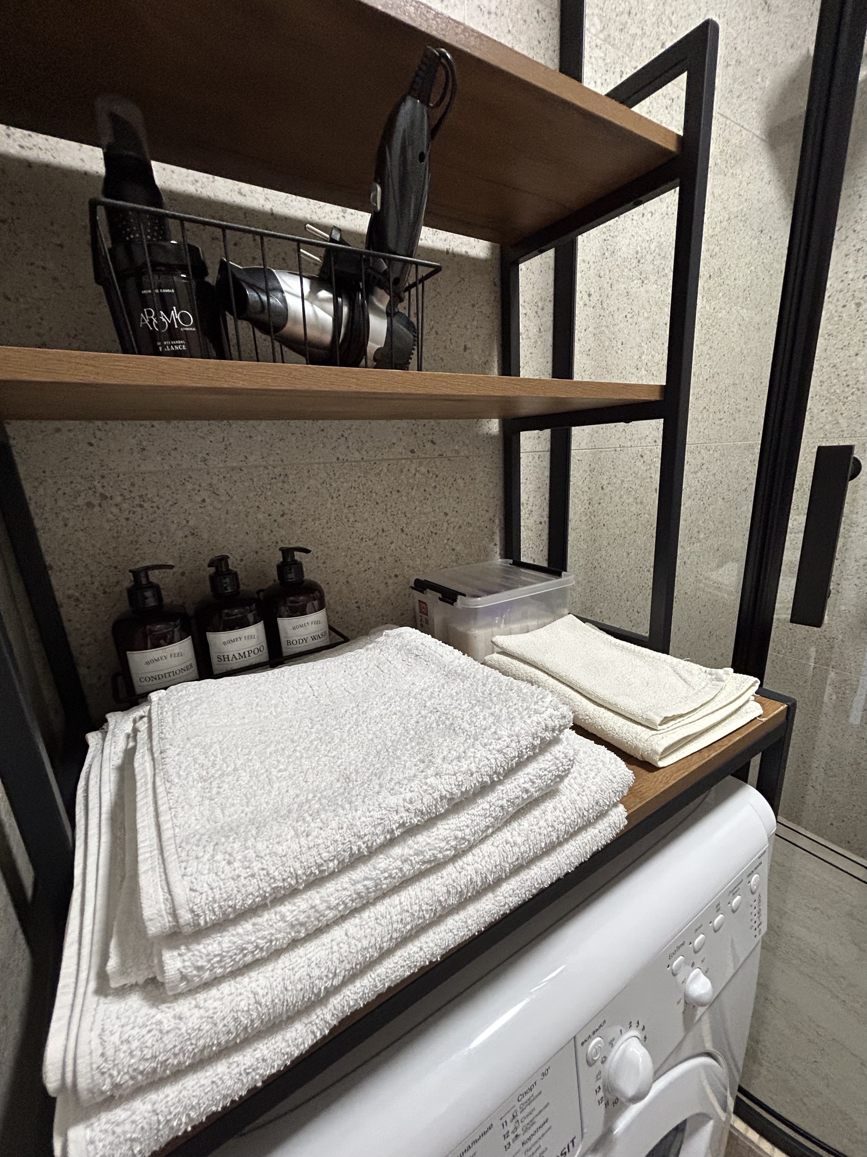 - посудомоечная машина, стиральная машина, 2 сплит-системы, пылесос, сушилка для белья, утюг, гладильная доска, фен;
