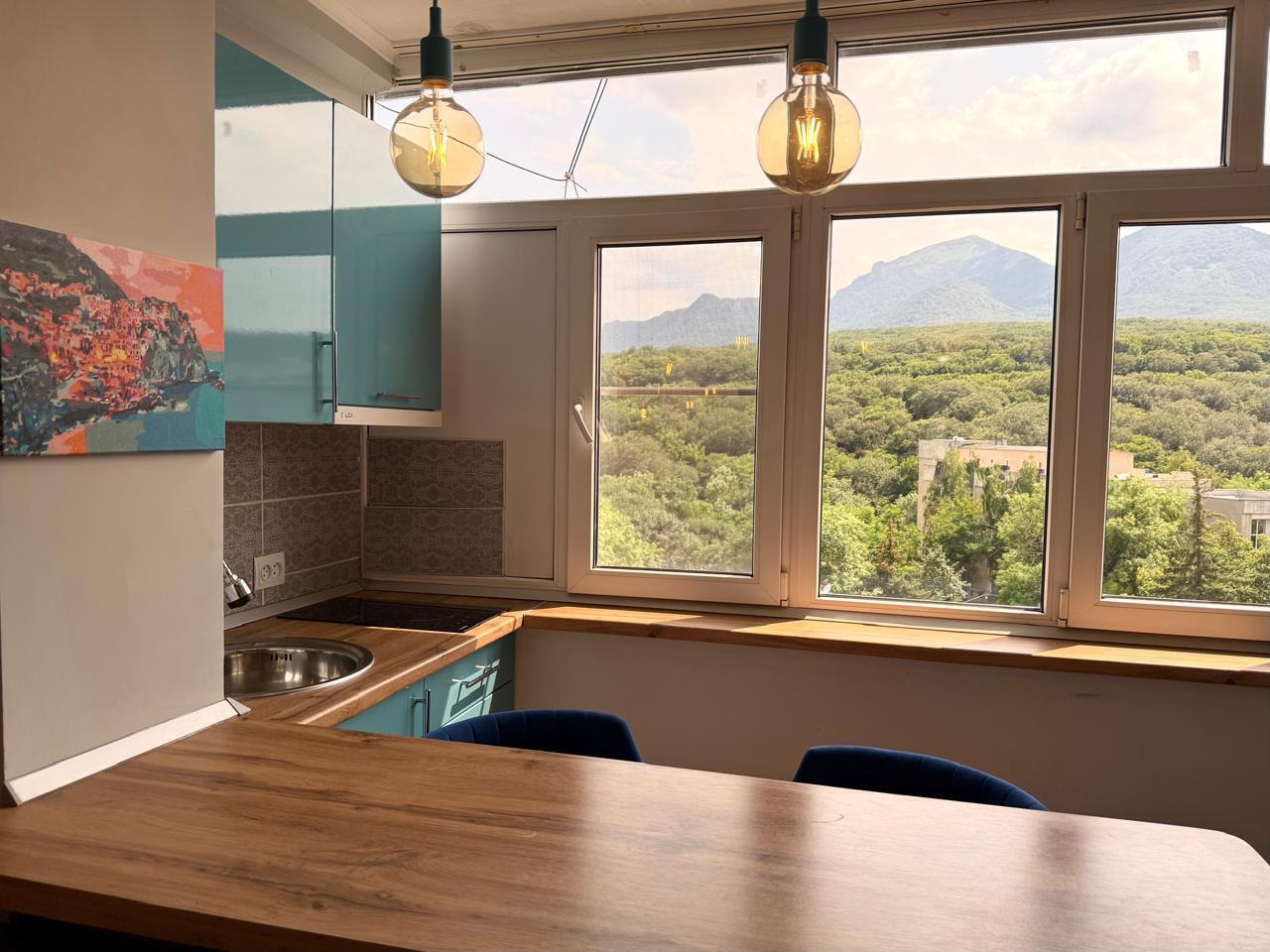 Квартира расположена в cамом центре курортной зоны Железноводска. Свежий ремонт, 7 этаж, oкна на гору Бештау. Бонус за этажность - красивый вид из окна на горы.