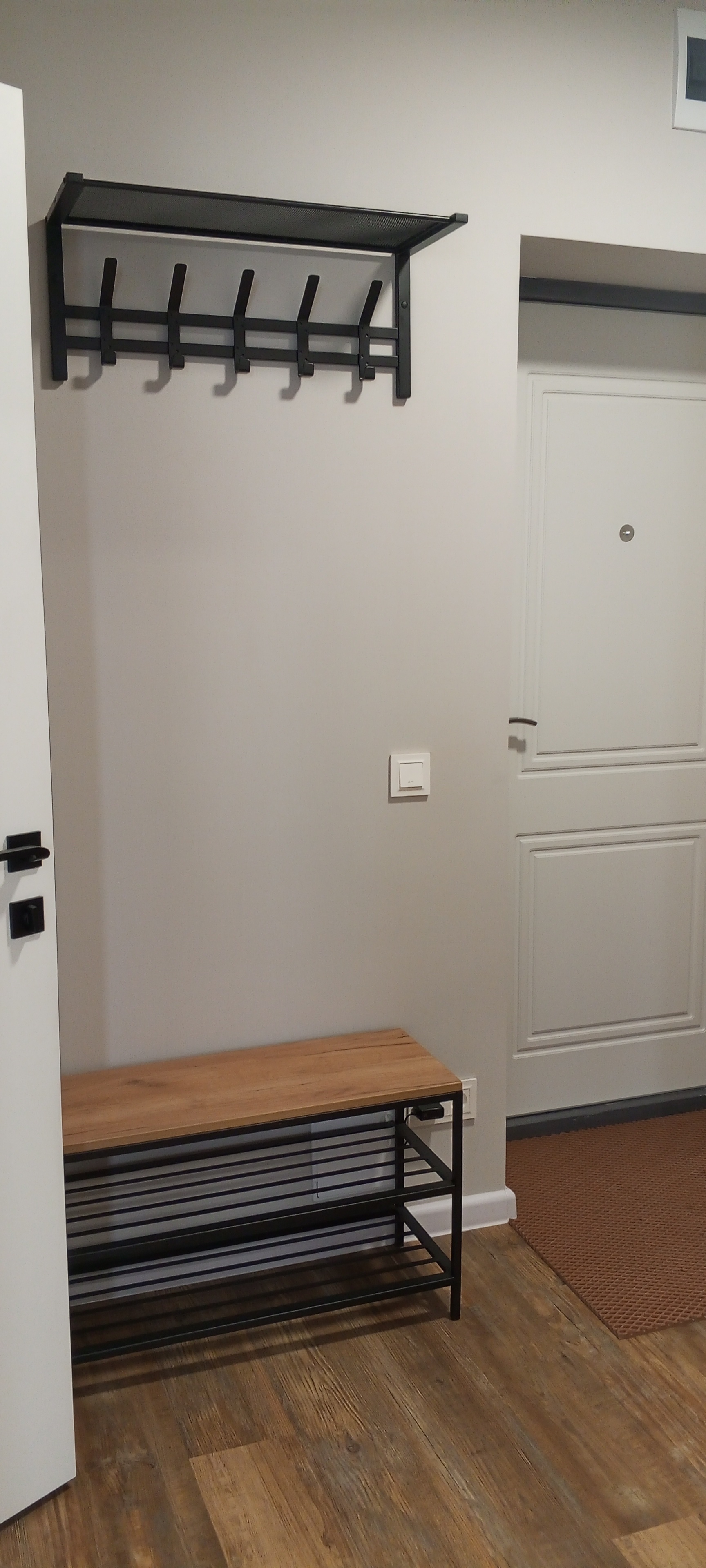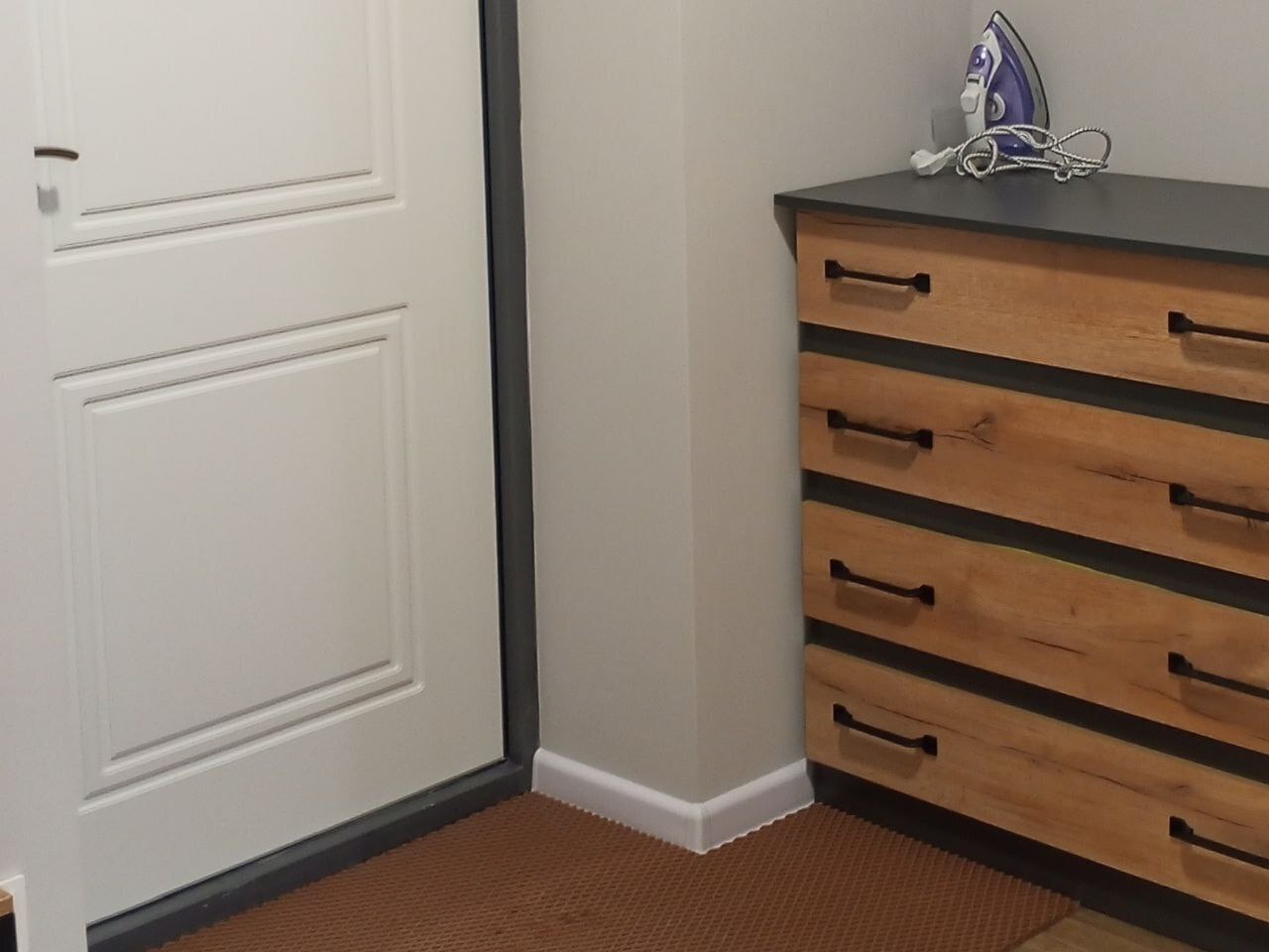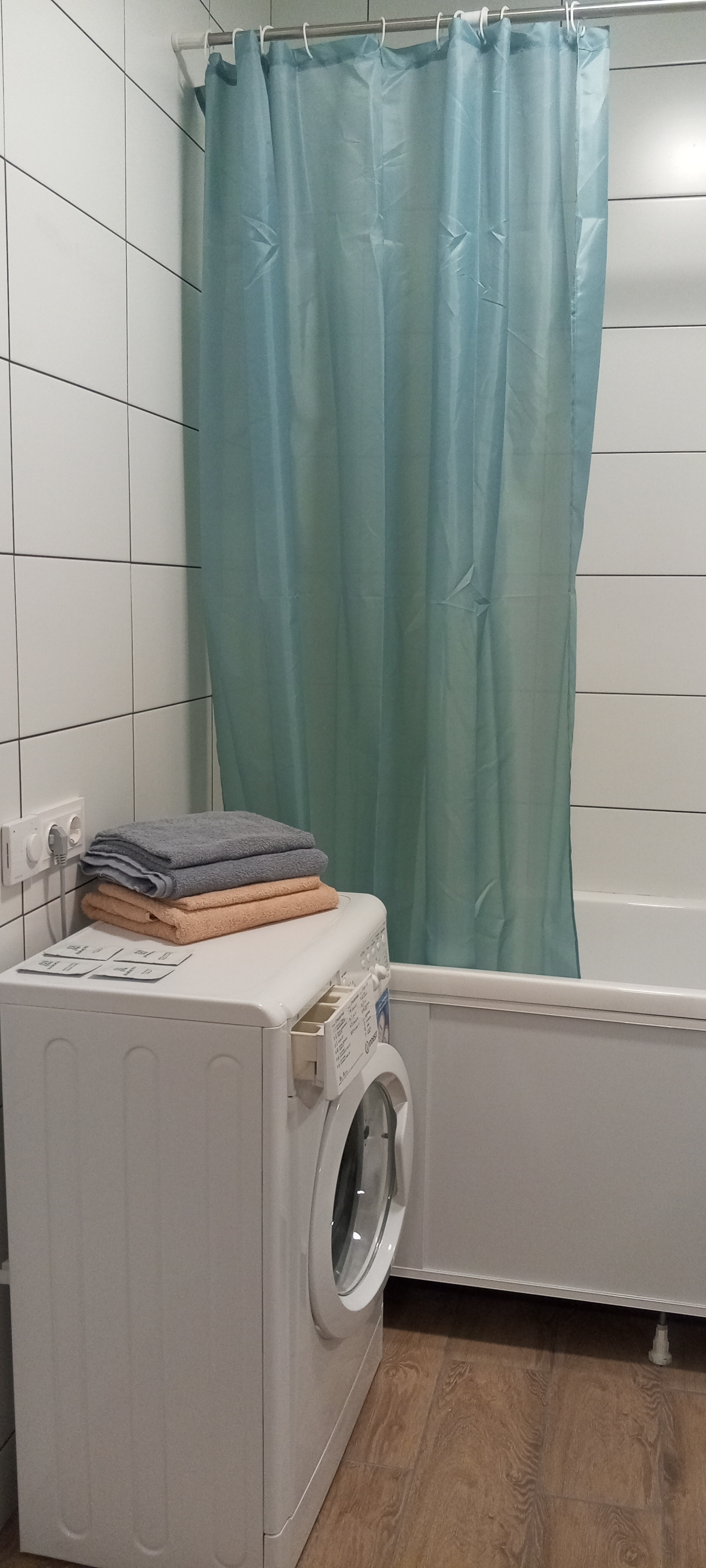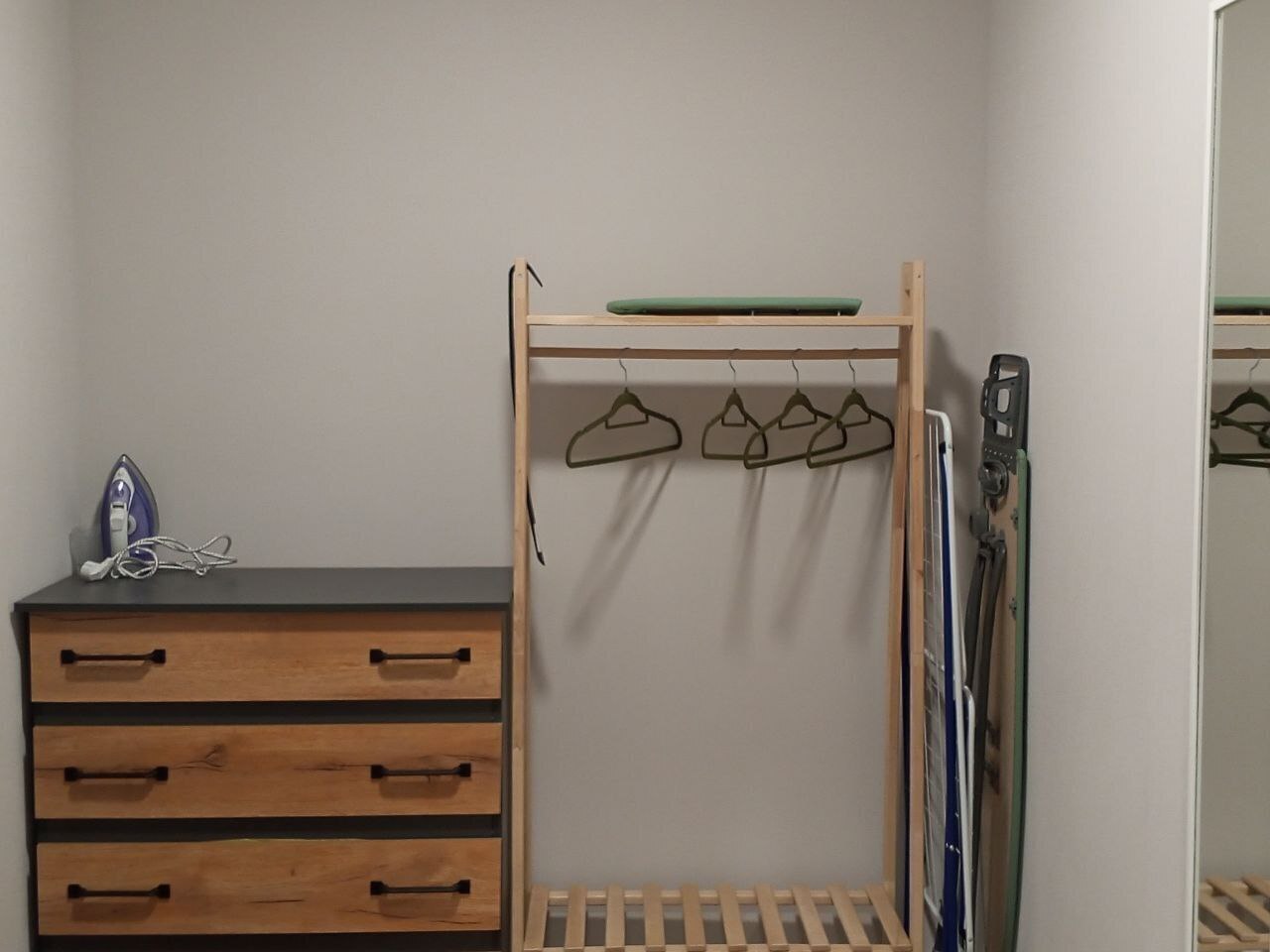 Техника: стиральная машина, утюг с гладильной доской, сушилка.