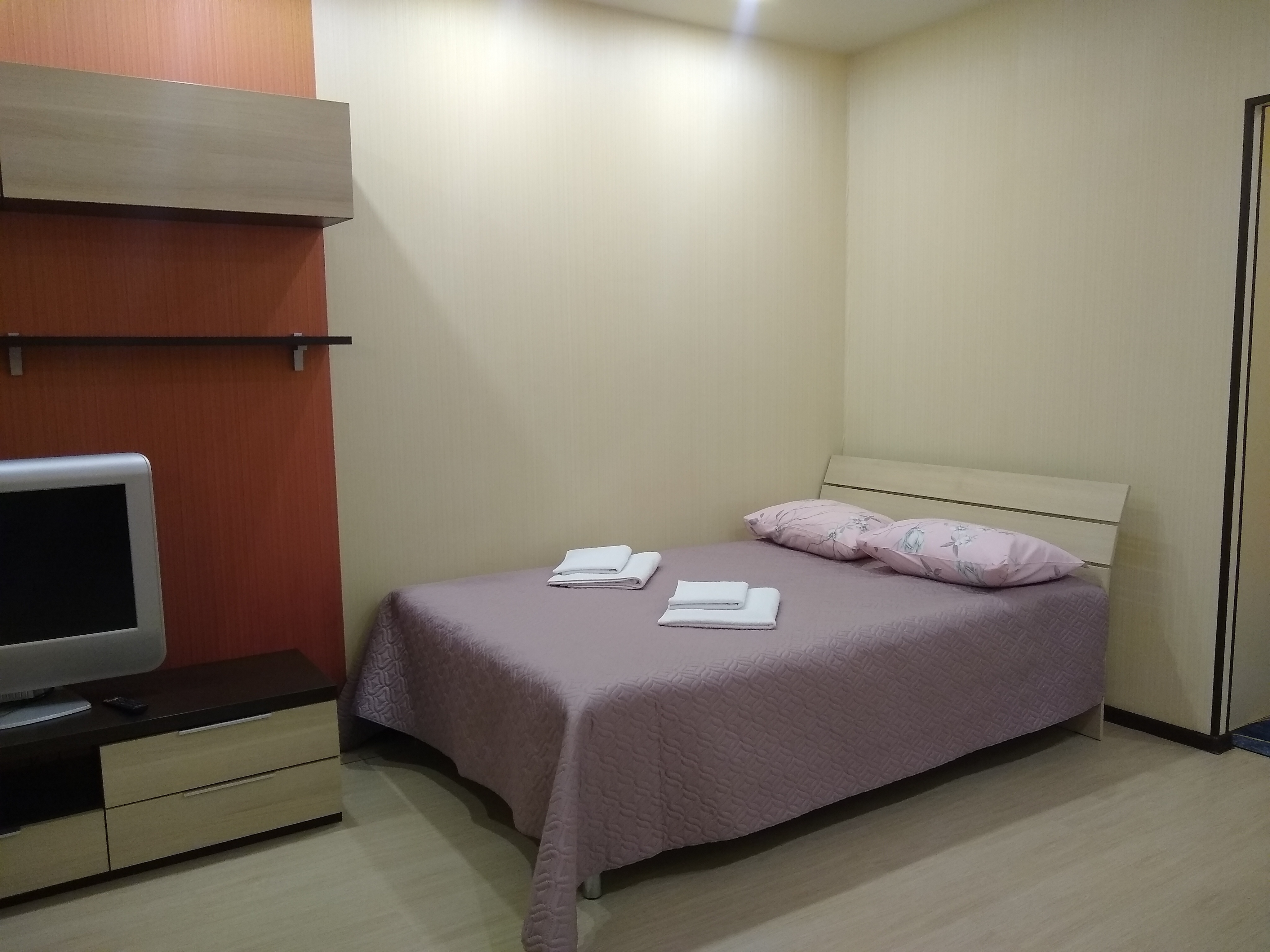 Чистое постельное бельё и полотенца.