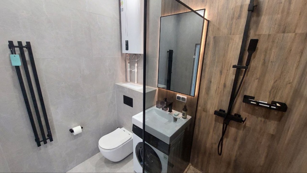 Ванная комната со всеми средствами гигиены.