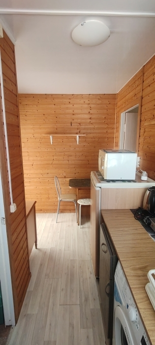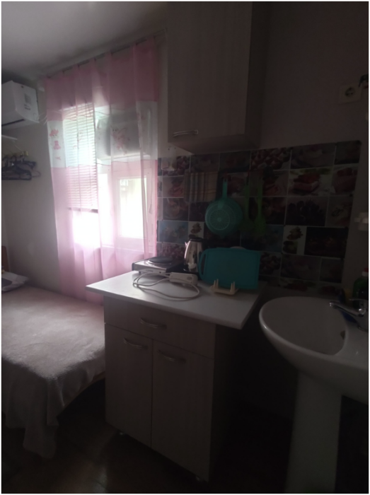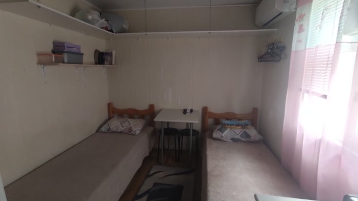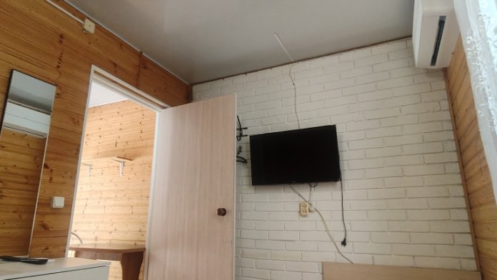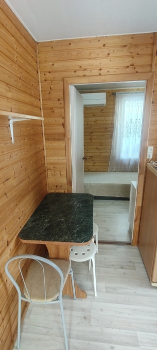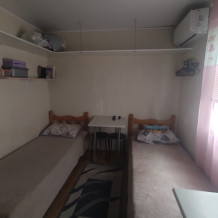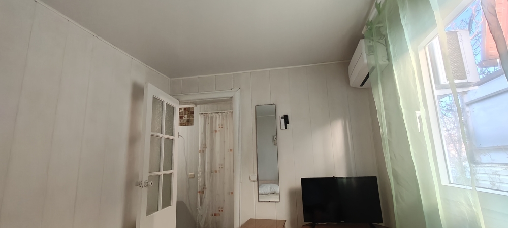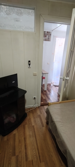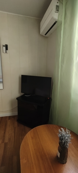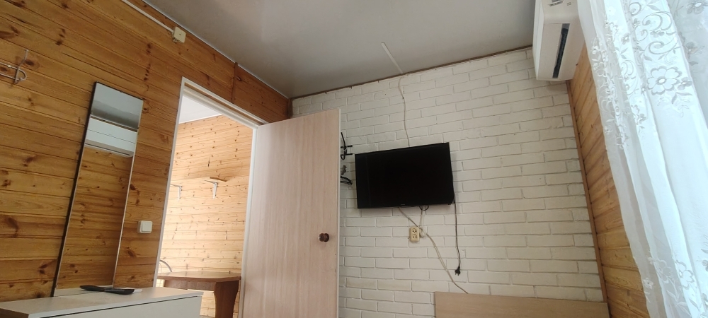 Однокомнатный номер на первом этаже на 3 гостя. В номере односпальная и двуспальная кровати, кухня, оборудованная всей необходимой техникой и посудой, санузел, телевизор, WiFi, кондиционер.