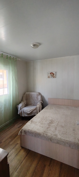 Двухкомнатный номер на втором этаже двухэтажного дома на 6 гостей. В первой комнате: двуспальная кровать и кресло-диван, во второй: односпальная кровать и двухъярусная кровать. В номере кухня, оборудованная всей необходимой техникой и посудой, санузел, телевизор, WiFi, кондиционер.
