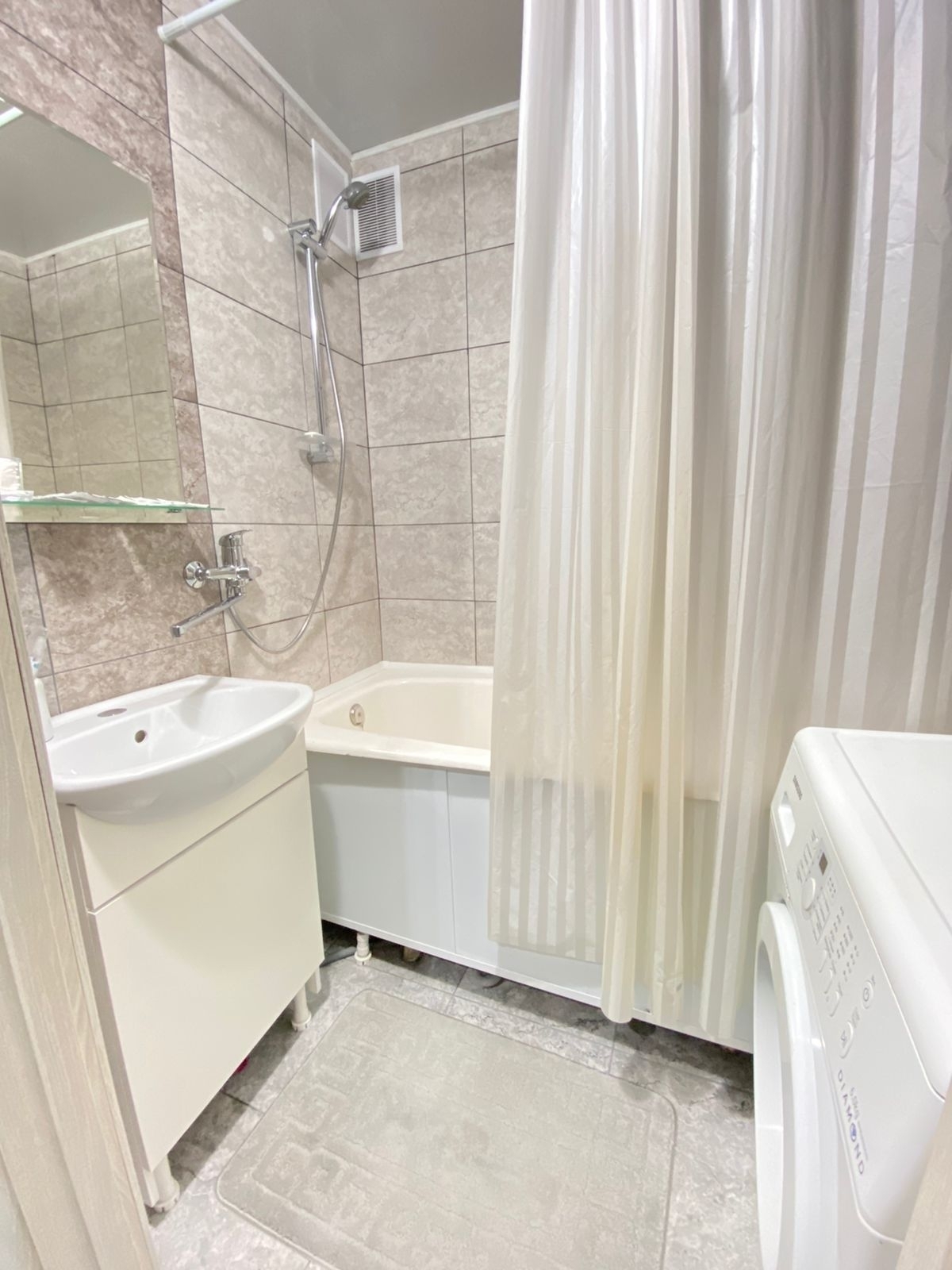- Вся необходимая бытовая техника и аксессуары: микроволновка, чайник, стиральная машина, гладильная доска, утюг, посуда, фены и многое другое.