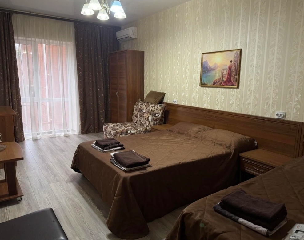 Улучшенные семейные двухкомнатные номера на первой береговой линии доступны на 2 и 3 этажах нашего гостевого дома. Номера оборудованы всем необходимым для комфортного проживания: удобные спальные места, постельное белье, полотенца, кондиционер, холодильник, посуда, санузел с ванной, туалетные принадлежности, балкон с видом на улицу. Во дворе есть мангал для любителей шашлыков и столики с беседкой для отдыха.