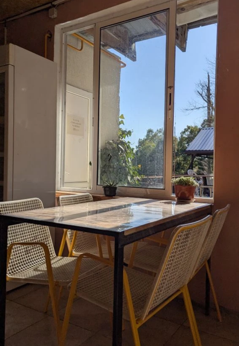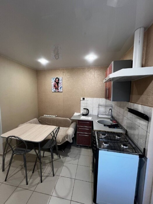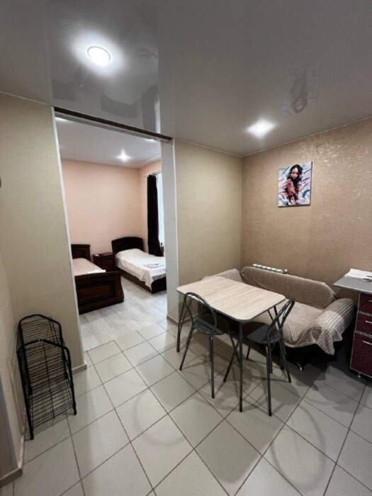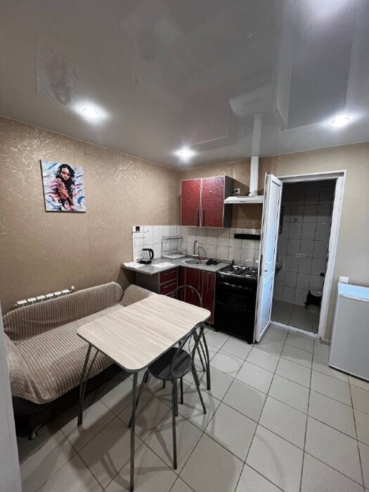Кухня общая оборудована плитой, холодильником, раковиной, электрочайником и обеденной зоной — вы сможете готовить любимые блюда в любое время.