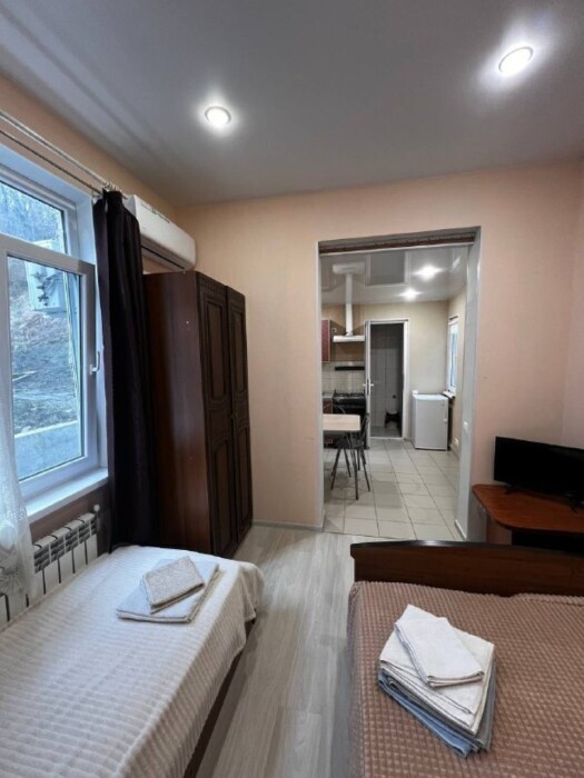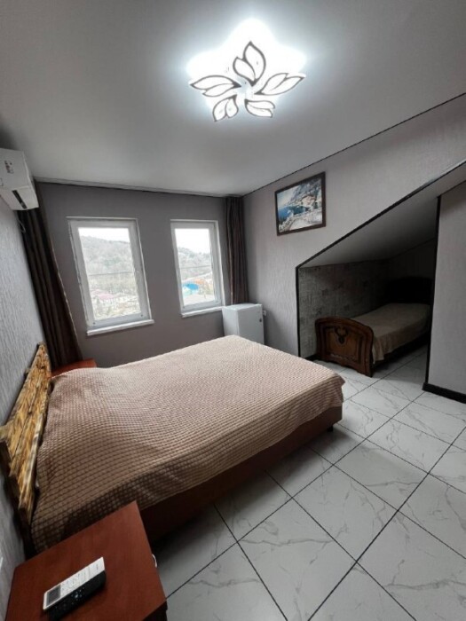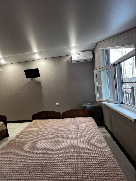 Для вашего удобства в гостевом доме представлены комнаты на 2, 3, 4 и 5 человек. Комнаты оборудованы всем необходимым для комфортного пребывания. В каждой комнате есть телевизор, холодильник, кондиционер и доступ в интернет.
