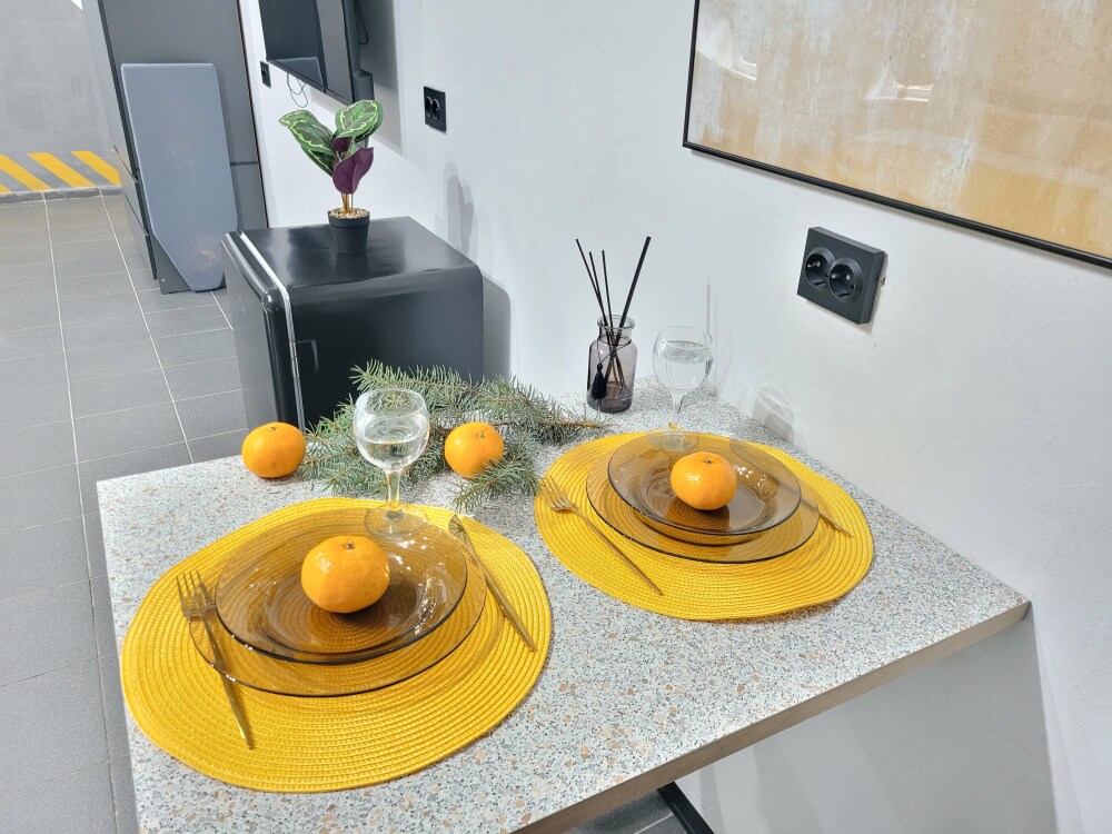Есть все необходимое для проживания: телевизор 43 smart TV, холодильник, стиральная машина, сплит-система, микроволновка электрочайник , электроплита на 2 комфорки, качественное постельное белье, комплект полотенец, 2 подушки, посуда и столовые приборы в полной комплектации на 2 персоны, утюг + гладильная доска, средства гигиены, моющие средства.