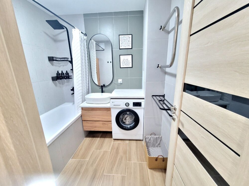 - Wi-Fi, кондиционер в каждой комнате, стиральная машина, сушилка, утюг и гладильная доска;