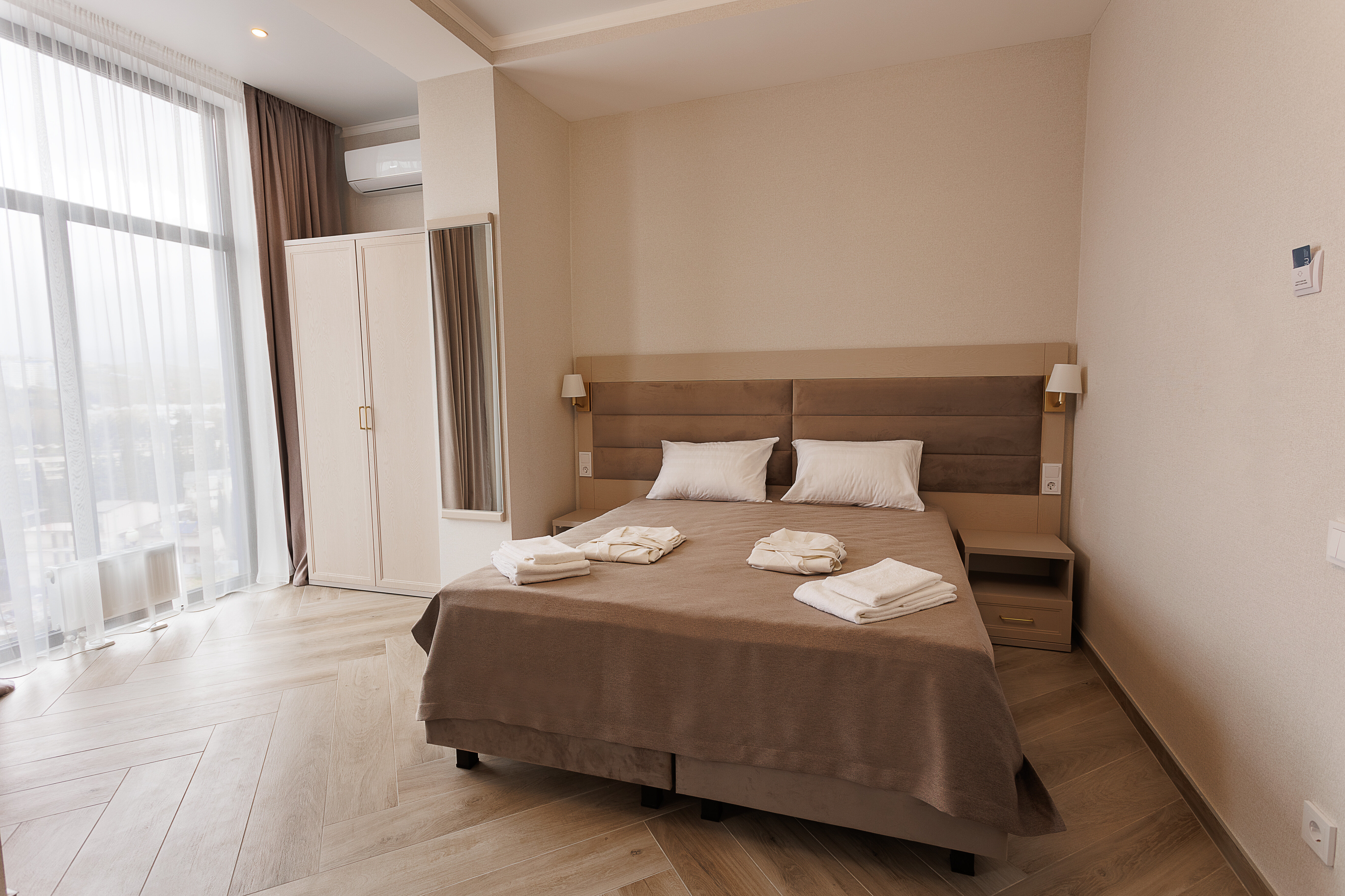 Все номера выполнены в светлых современных тонах, что создает ощущение простора и свежести.