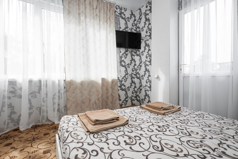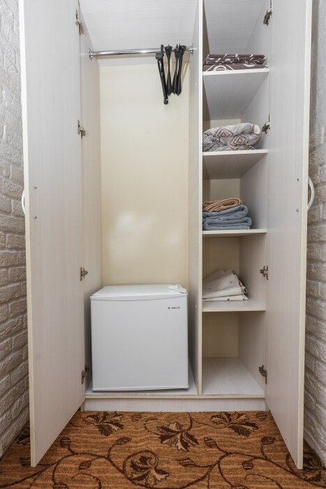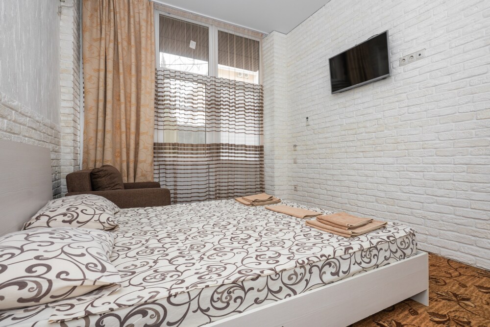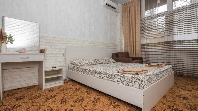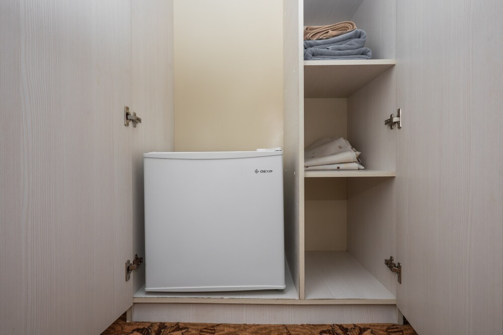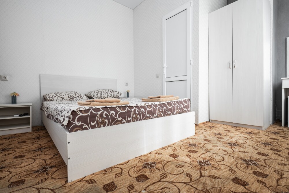 Двухместный полулюкс площадью 22 кв.м рассчитан на размещение до 2 гостей. В номере: двуспальная кровать, шкаф, комод и зеркало. Оснащение включает Wi-Fi, телевизор с кабельными каналами, кондиционер, небольшой холодильник и сушилку для одежды. Собственная ванная комната оборудована душем, предоставляются постельное бельё и полотенца.