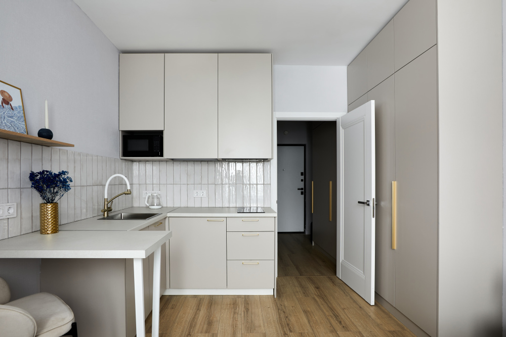 Современная студия в жилом комплексе бизнес-класса «Морская набережная», расположенном в престижной локации Санкт-Петербурга на Васильевском острове.