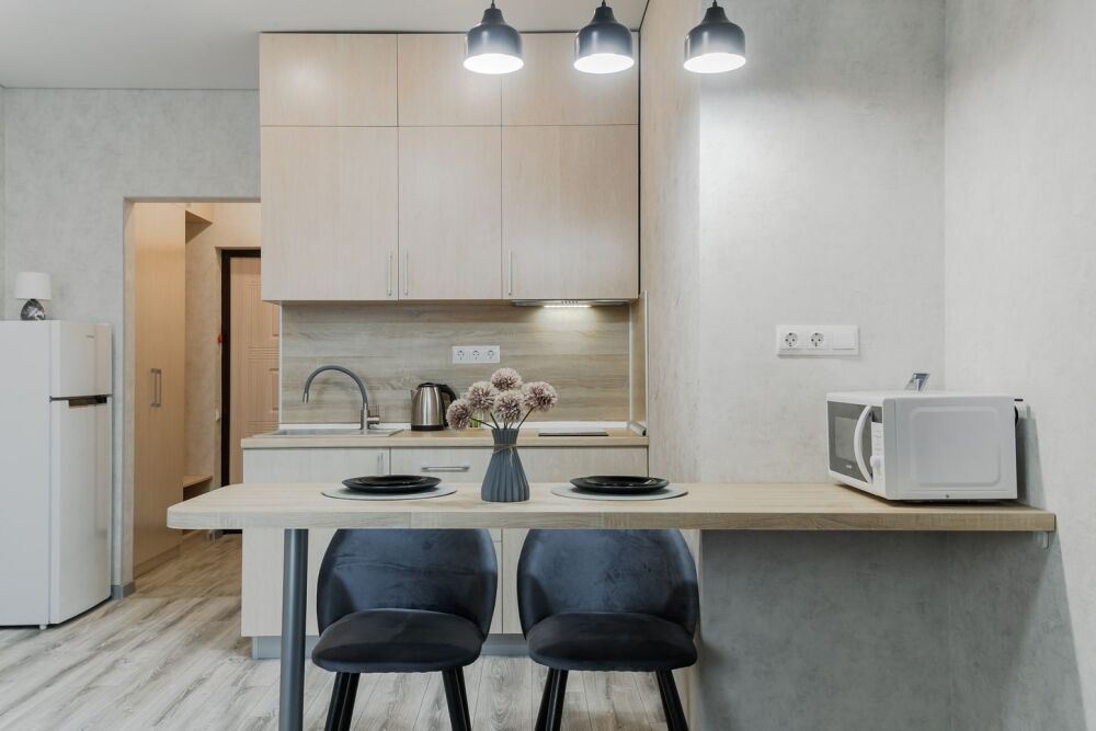 - Полностью оборудованная кухня с необходимой техникой и посудой.