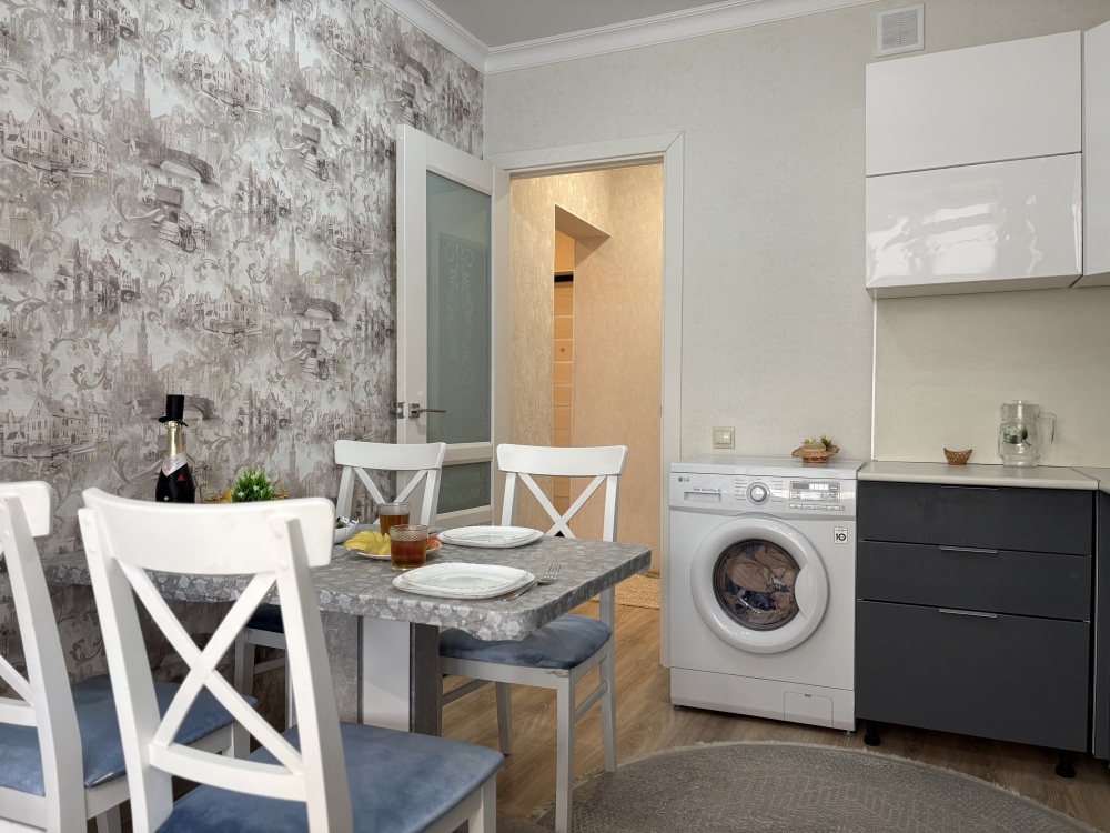 Данная квартира отлично подходит для проживания большой семьи, компании командированных сотрудников и романтичных пар.