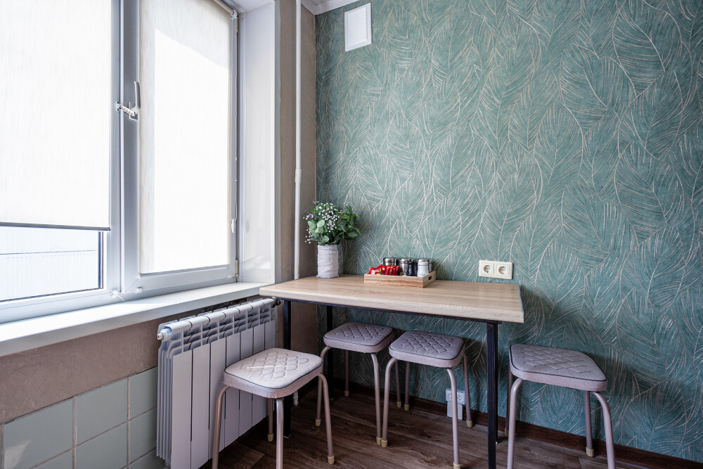Оснащена бытовой техникой: плита, духовка, микроволновая печь, фильтр для воды, холодильник, электрический чайник