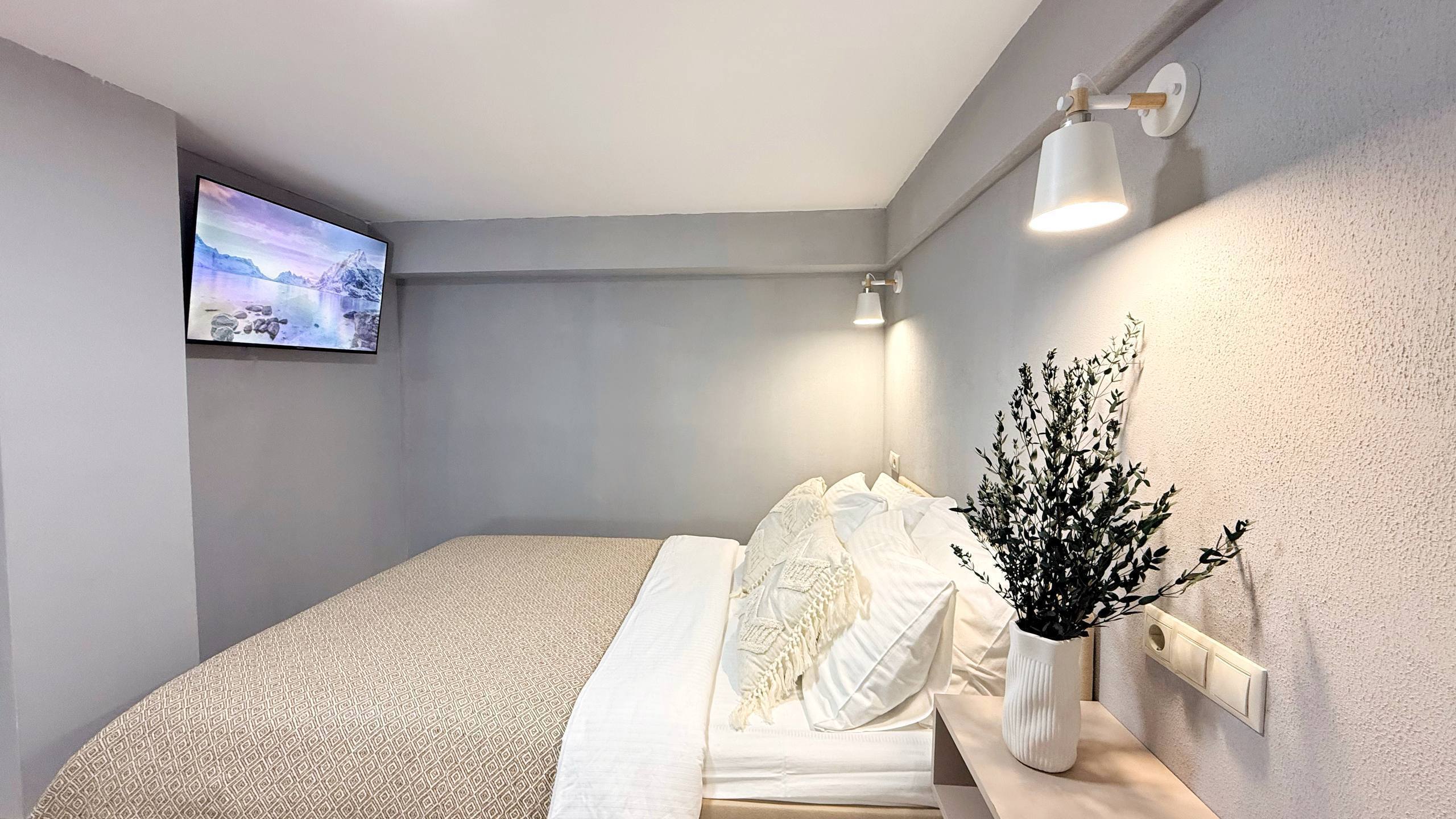 Второй уровень - Ваша спальня с большой кроватью и ортопедическим матрасом. Спите высоко, с премиум-бельем и ощущением уюта.