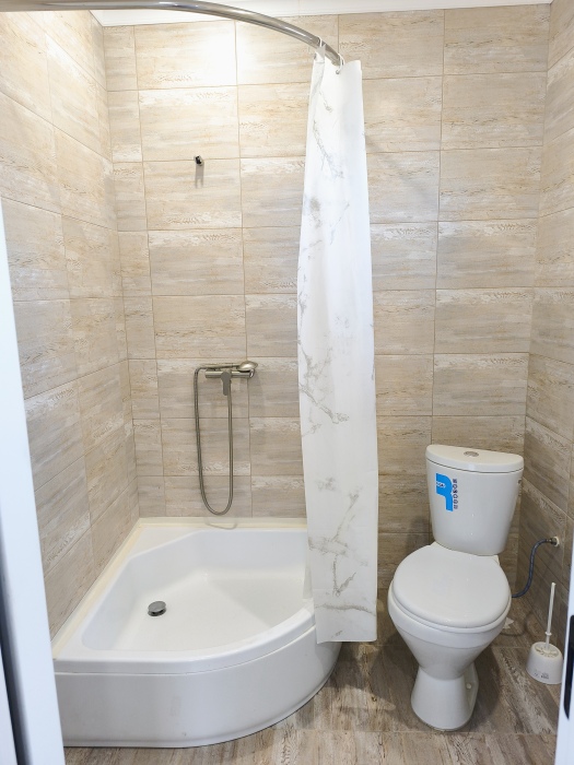 В номере есть душ,туалет, кондиционер, холодильник, телевизор. На озелененной территории находится батут, качеля-гнездо, детская площадка, турник, мангалы.