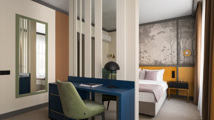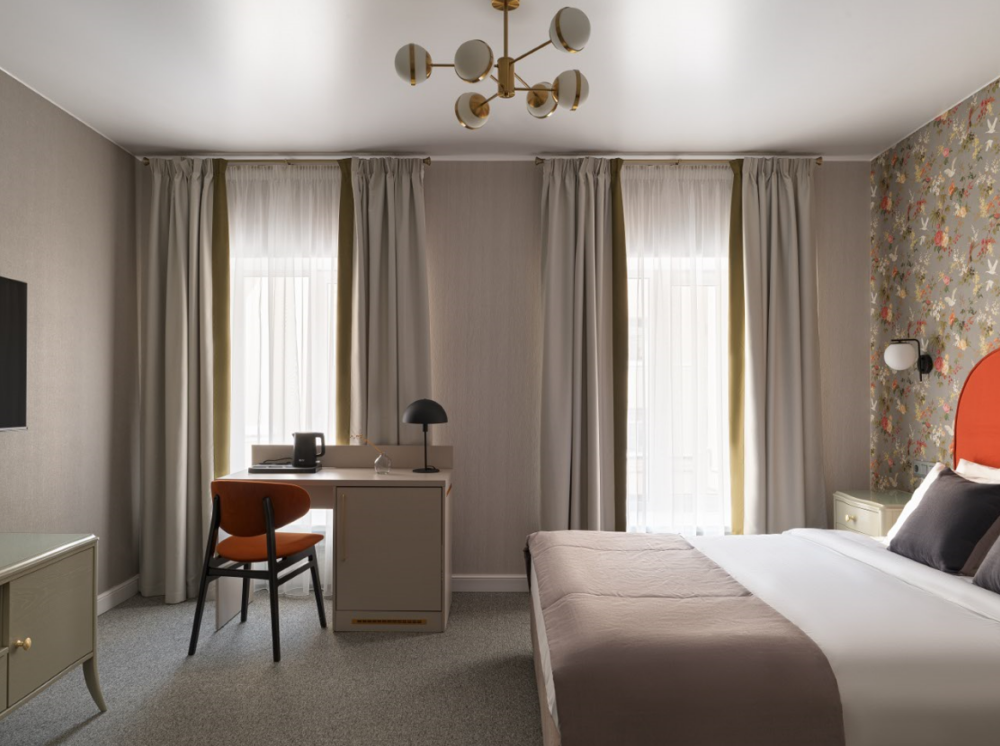 Полулюкс Оранж — площадью 37 квадратных метров, расположен 2 этаже отеля. Номер с видом на город.