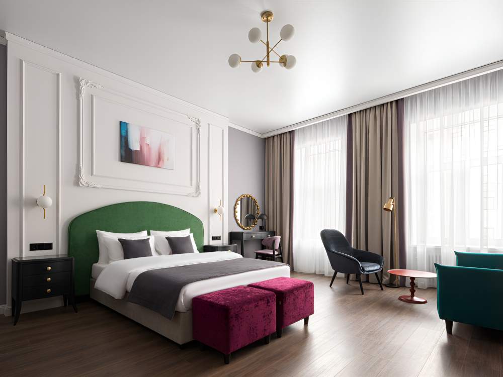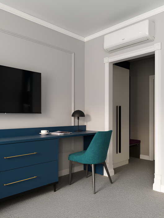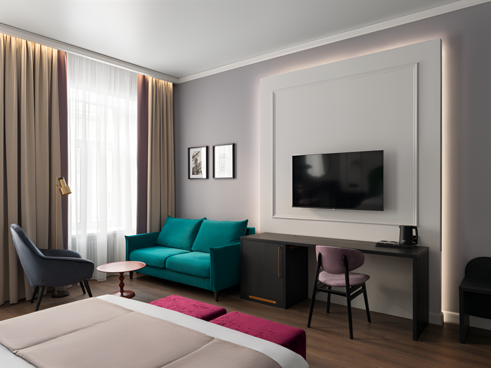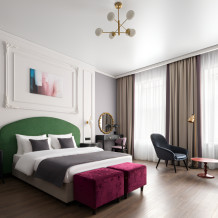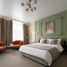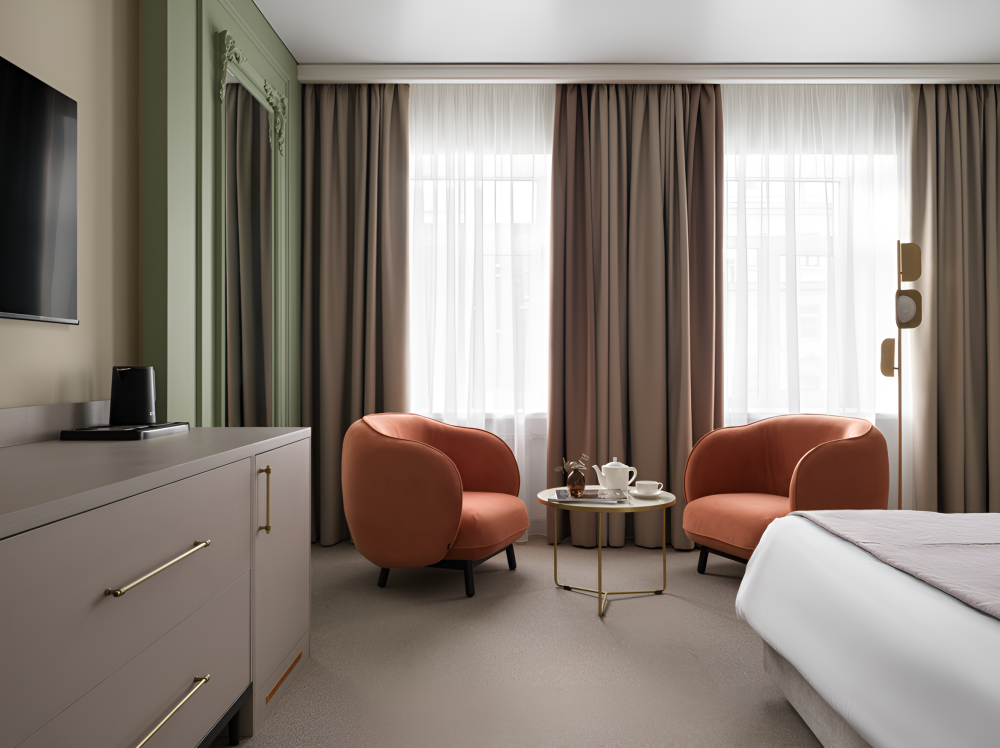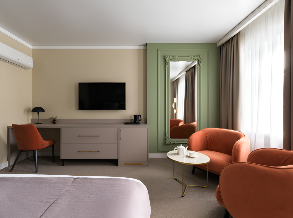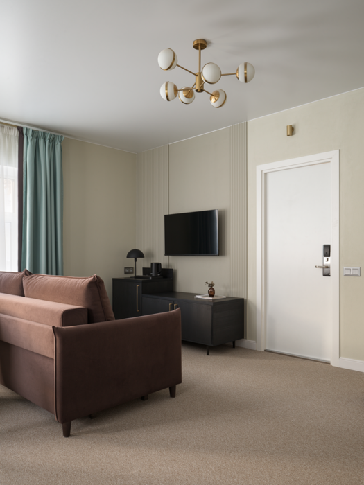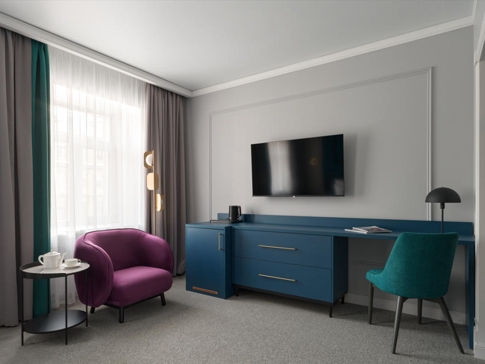 В номерах данной категории также есть жк телевизор с доступом к онлайн-кинотеатру и сотнями каналов, прямой телефон, вместительный сейф для ценных вещей и компактный мини-холодильник.