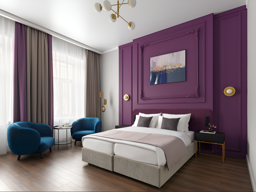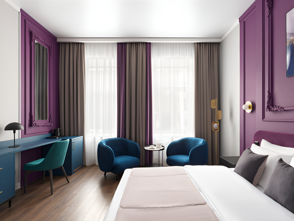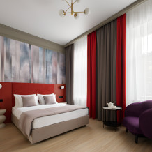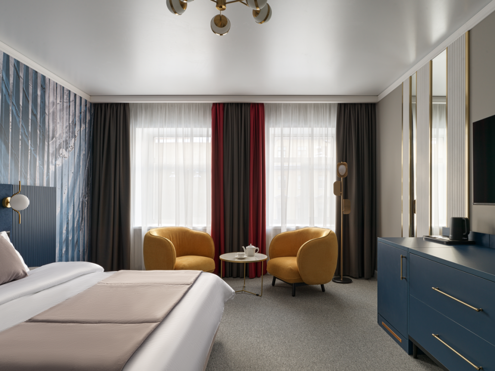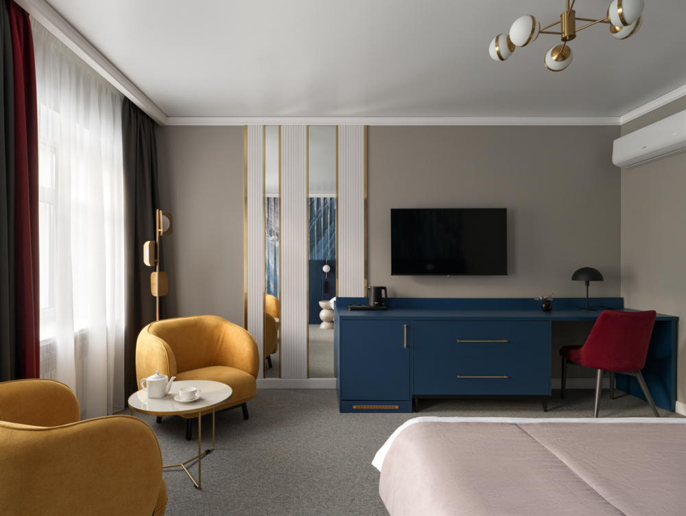 Полулюкс Роял — площадью 35 квадратных метров, расположен 2 этаже отеля. Номер с панорамным видом на город.