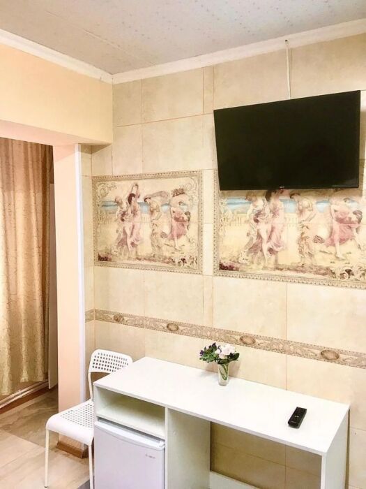 В номере: санузел, душ, кондиционер, телевизор холодильник, письменный стол.
