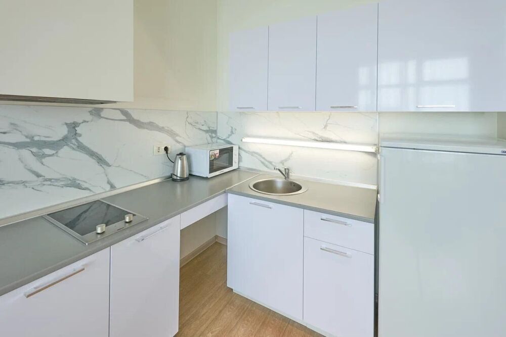 - Полностью укомплектованная мебелью и посудой кухня;