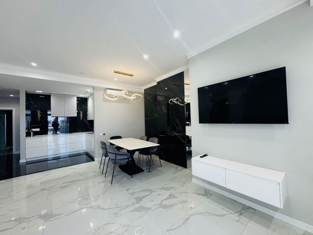 - Все необходимое для комфортного отдыха: белоснежное постельное белье, полотенца, посуда, а также полноценная кухня, стиральная и посудомоечная машина.