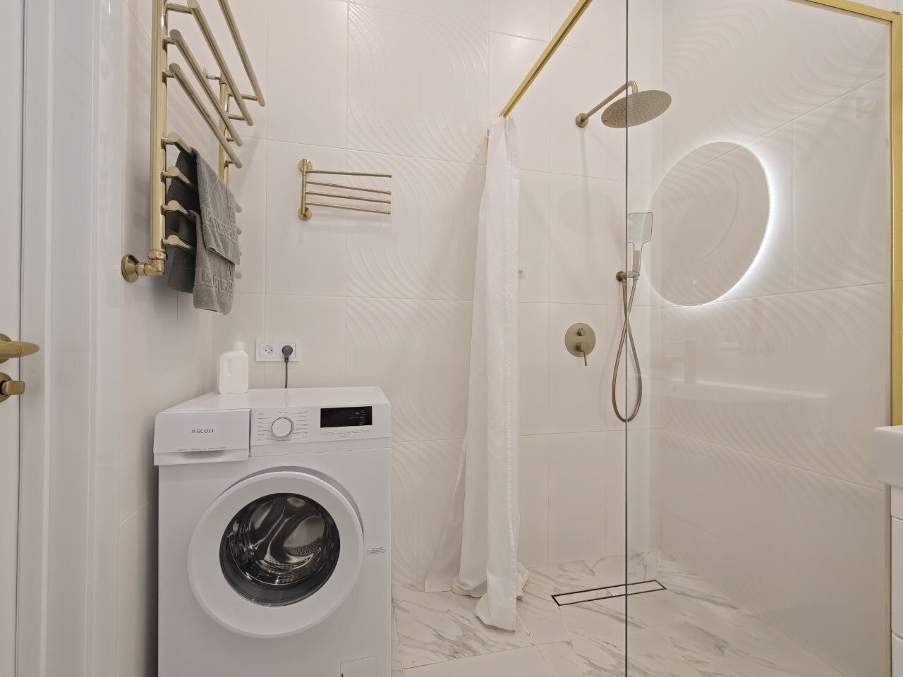 Ванная комната: просторная душевая кабина, полная комплектация гигиеническими средствами (включая зубные щётки), индивидуальный комплект полотенец для каждого гостя, плюс дополнительно пляжные полотенца.