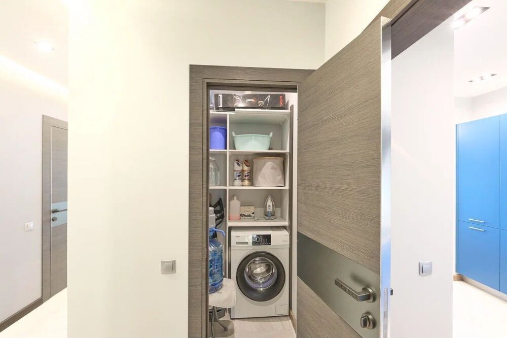 Кондиционер (сплит-система), стиральная машина, посудомоечная машина, холодильник, варочная панель, духовой шкаф, микроволновка, чайник, фен, сушилка для белья.