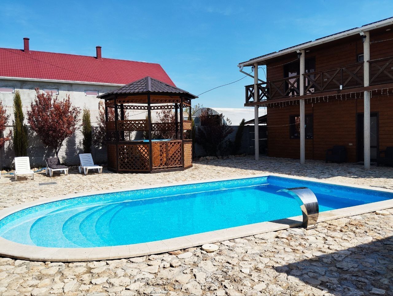 - большой бассейн с гидромассажем и с круглосуточной системой фильтрации воды