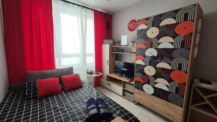 Стильная и яркая студия на высоком этаже с красивым видом в микрорайоне Леонидовка, в новостройке, рядом с Мытищинской областной больницей.