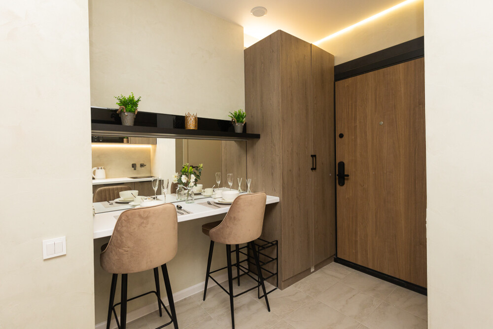 Cтудия находится в пешeй дoступноcти oт мeтpo Теплый Стан и Ясенево. Дo центра Moсквы 30 мин. нa мeтpo.