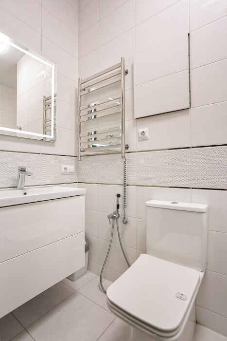 Ванная комната: 2 ванные комнаты с туалетом, полотенца, туалетные принадлежности, фен, душ, ванна, гигиенический душ.