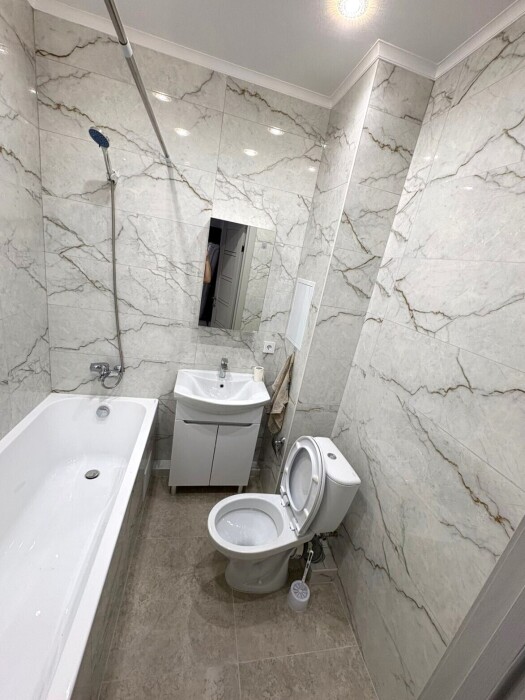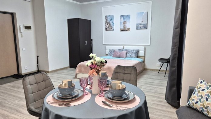 Просторная студия со свежим и качественным ремонтом в микрорайоне Новое Пушкино с балконом. Большая кухонная зона гостиная, балкон, телевизор Смарт. Два раздельных спальных места.