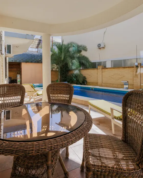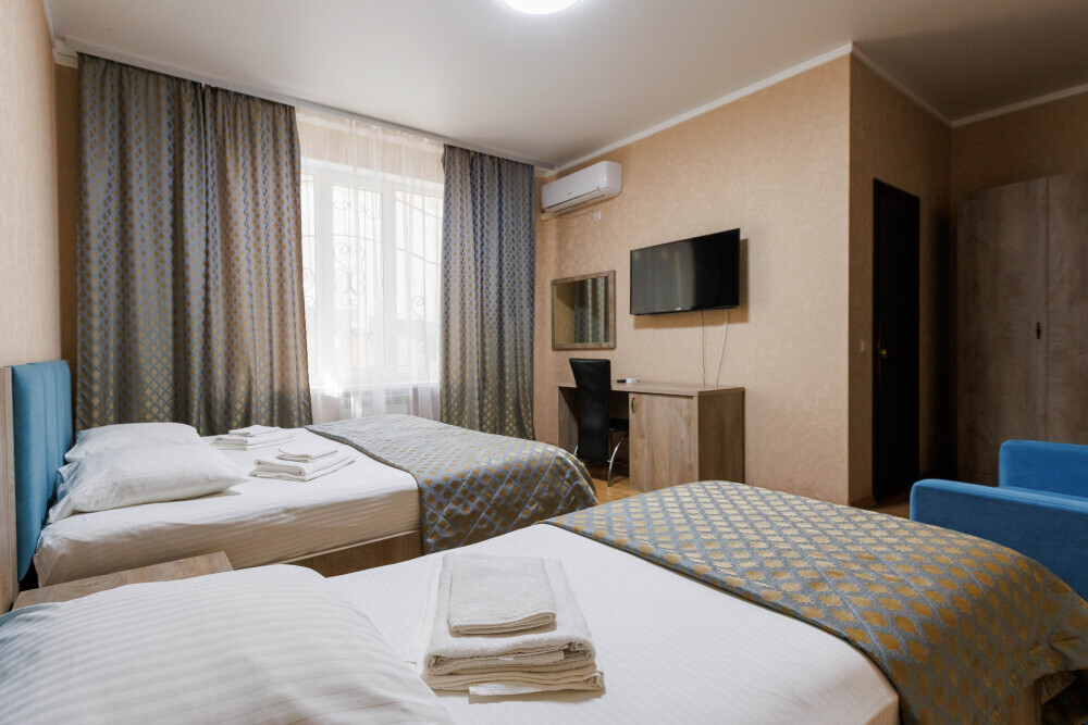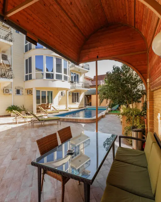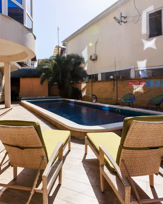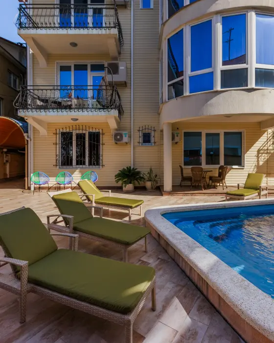 Уютные номера со всем необходимым подойдут для отдыха вдвоём, с семьёй или небольшой компанией. На территории гостевого дома есть подогреваемый бассейн, а рядом находятся рынок, торговые точки, прогулочные зоны и всё, что нужно для удобного и приятного отдыха в Адлере.