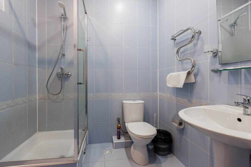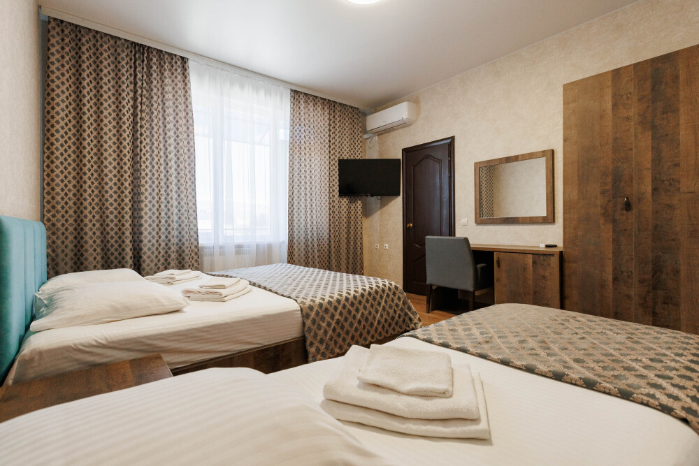Двуспальная и две односпальные кровати обеспечат Вам отличный сон и отдых после активного дня. Кондиционер, холодильник, ЖК телевизор и санузел с душем обеспечат Ваше удобство.