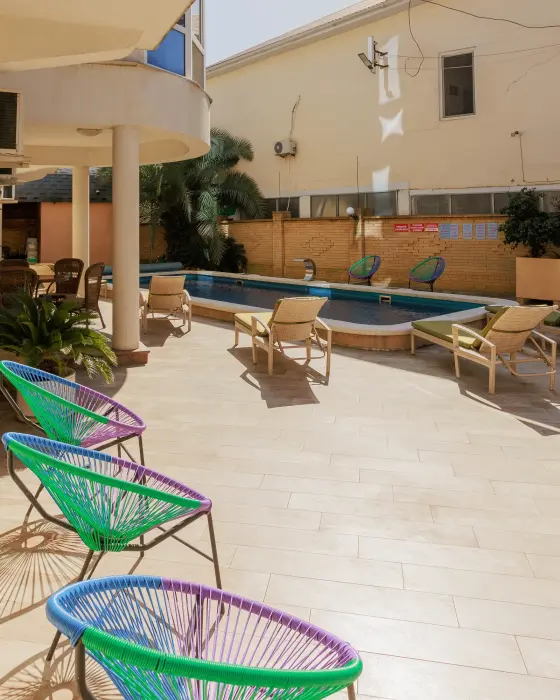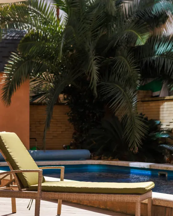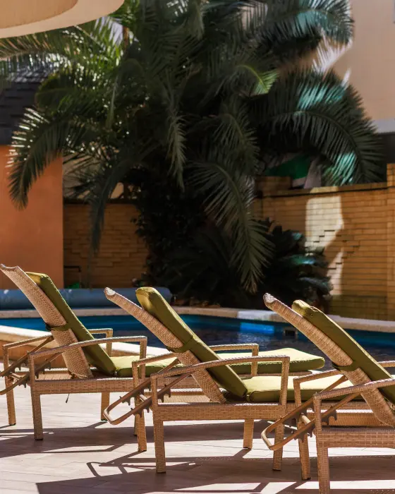 Бесплатный подогреваемый сезонный бассейн 10х4 метра. А также лежаки для принятия солнечных ванн.