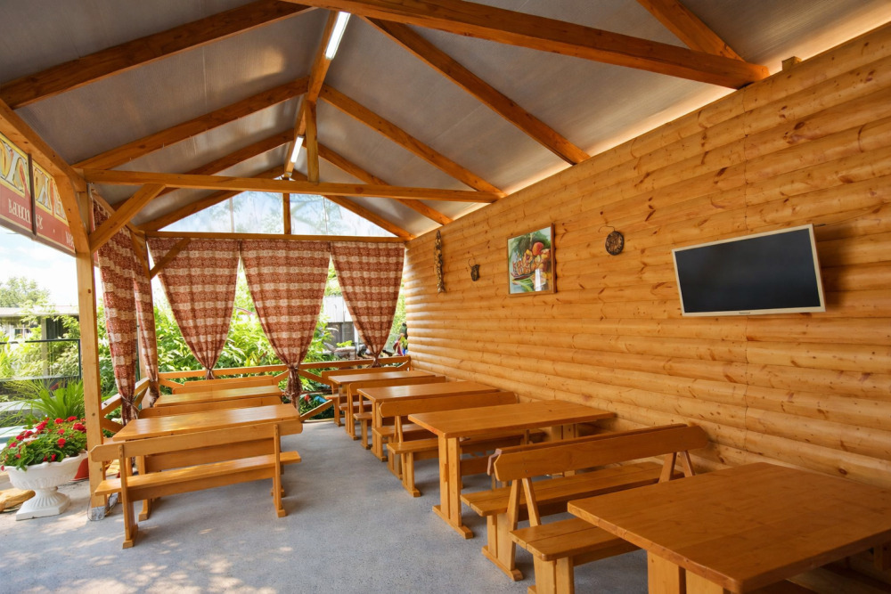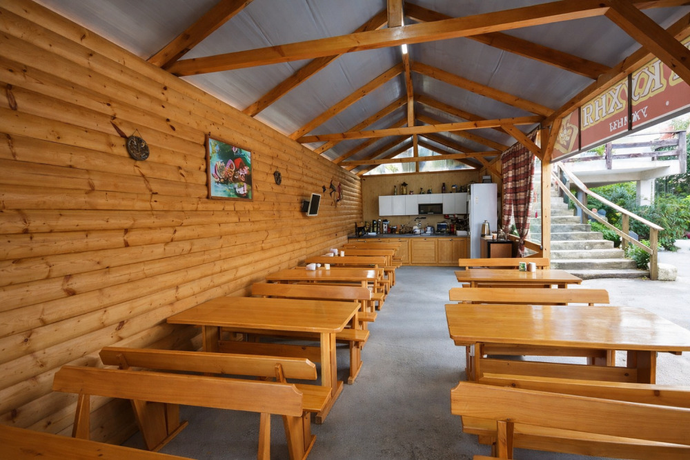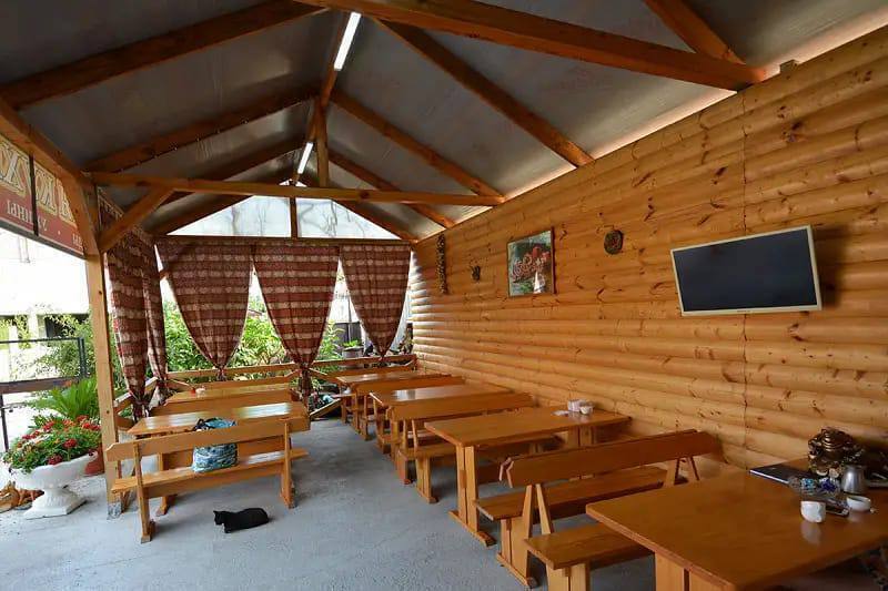 Для тех, кто не хочет готовить самостоятельно, в гостевом доме работает уютная столовая с приятными и доступными ценами, где можно вкусно и сытно поесть в любое время дня.