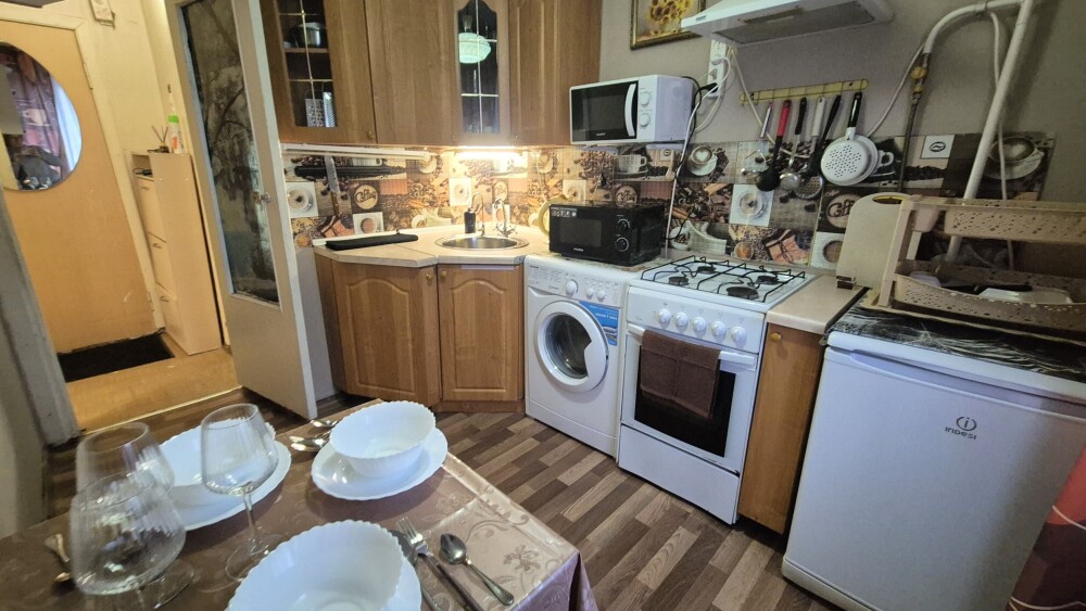 - Холодильник, плита, микроволновая печь, чайник, стиральная машина