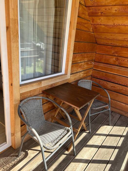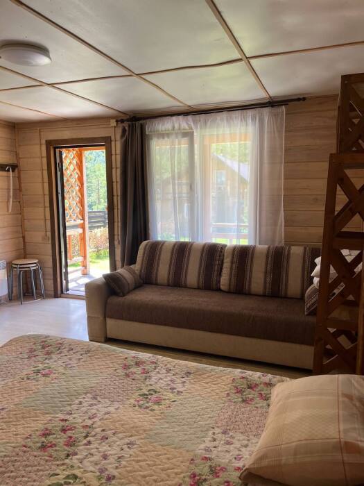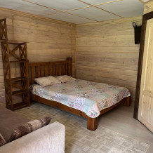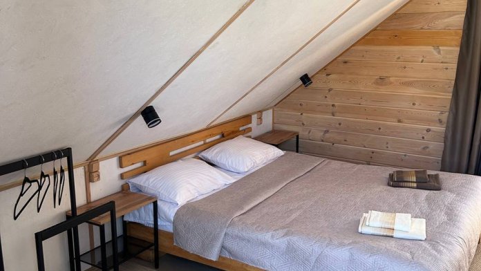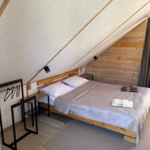 На территории расположены три дома, в каждом по четыре номера. На первых этажах находятся Семейные номера (размещение до 4-х человек), на вторых этажах 2-местные номера с балконом.
