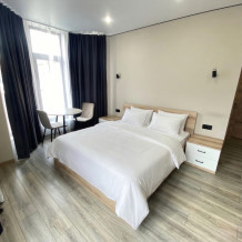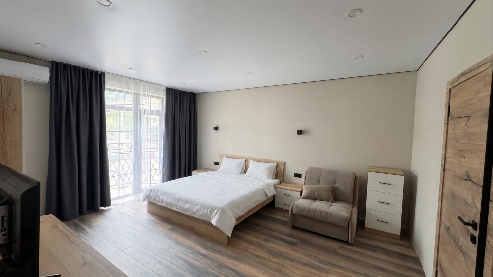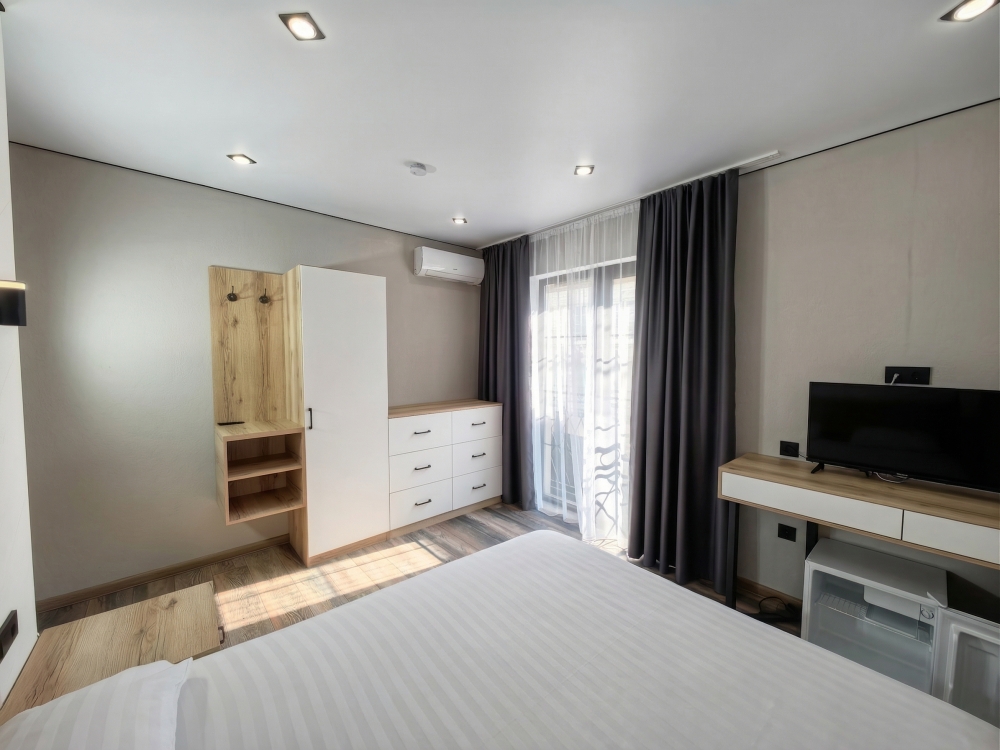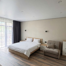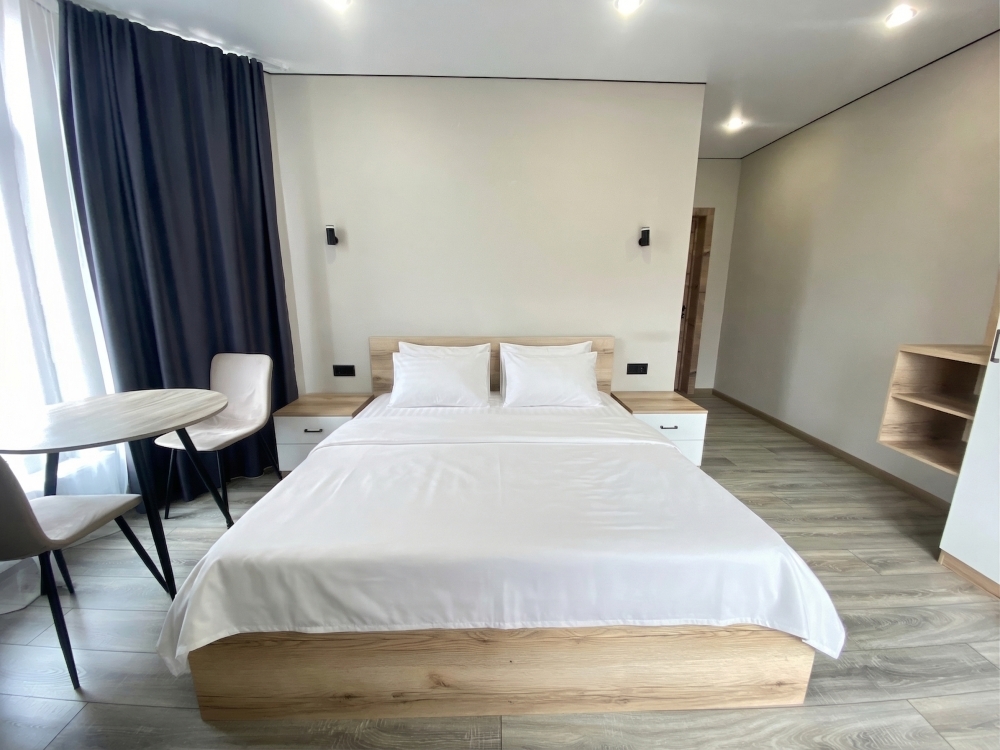 Мы предлагаем уютные номера различных категорий: двухместные, трехместные, четырехместные и семейные от 22 до 55 м2. Каждый номер преподносит своим гостям удобные кровати, свежее постельное белье, мягкие полотенца, комплект средств гигиены и фен для полного комфорта. Кроме того, номера оснащены душевой кабиной, сплит-системой, телевизор, холодильник, чайник.