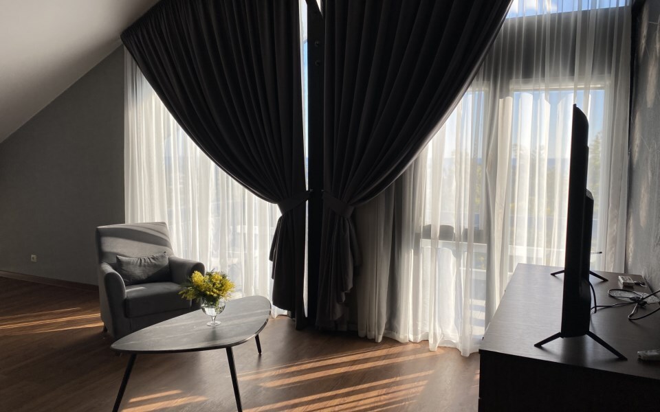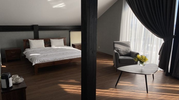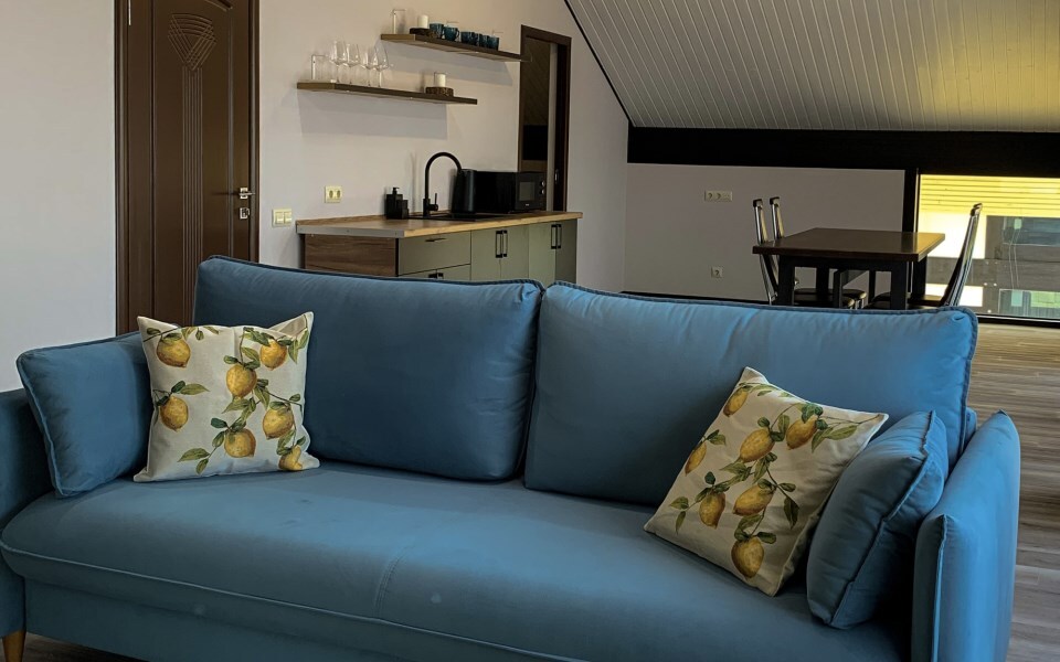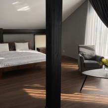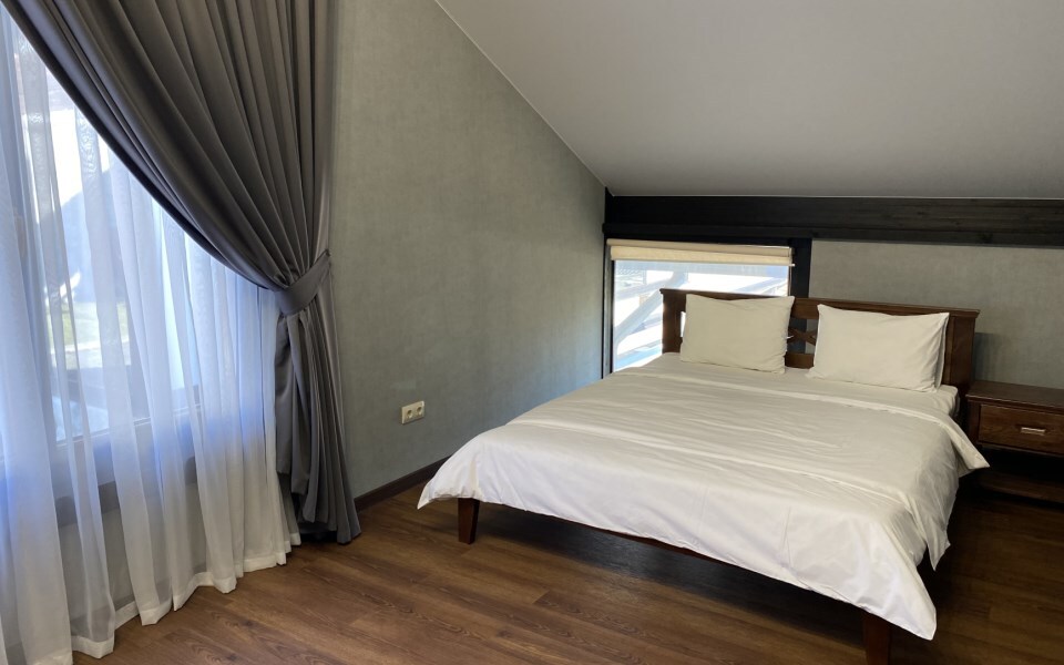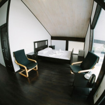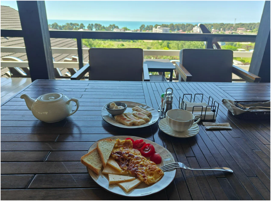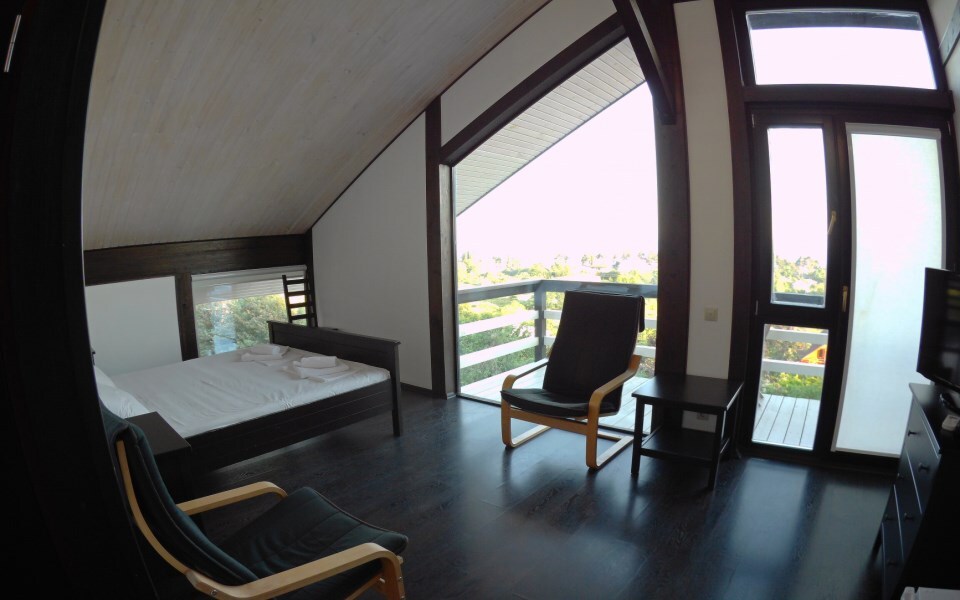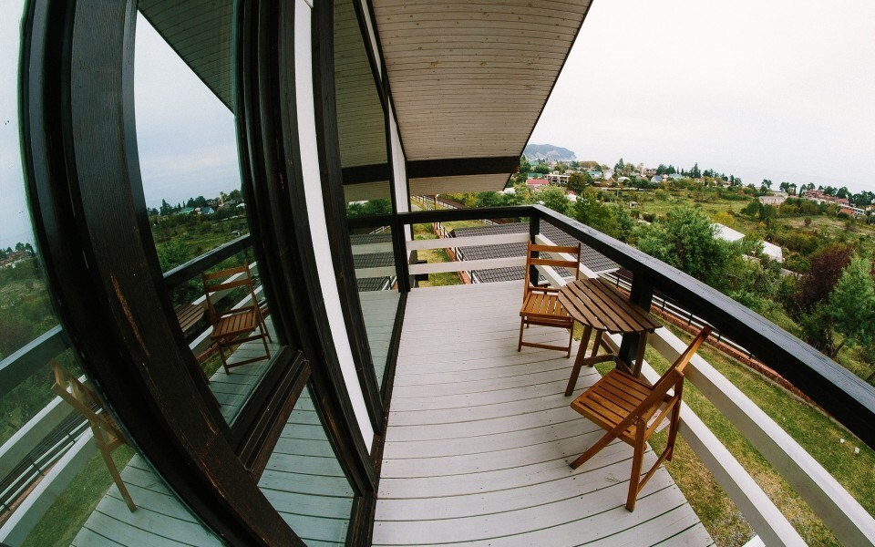 Живописное расположение у подножья гор позволяет сполна насладиться уединением в тихом местечке Абхазии. Панорамные окна отеля открывают всю красоту окружающей природы. На территории отеля находится 4 комфортабельных двухэтажных дома из бруса в стиле фахверк. Отдельно расположено кафе с просторной верандой и видом на море.