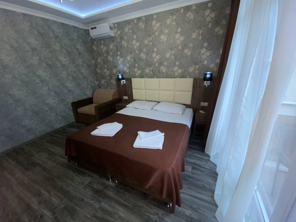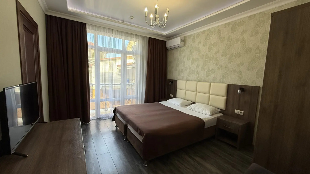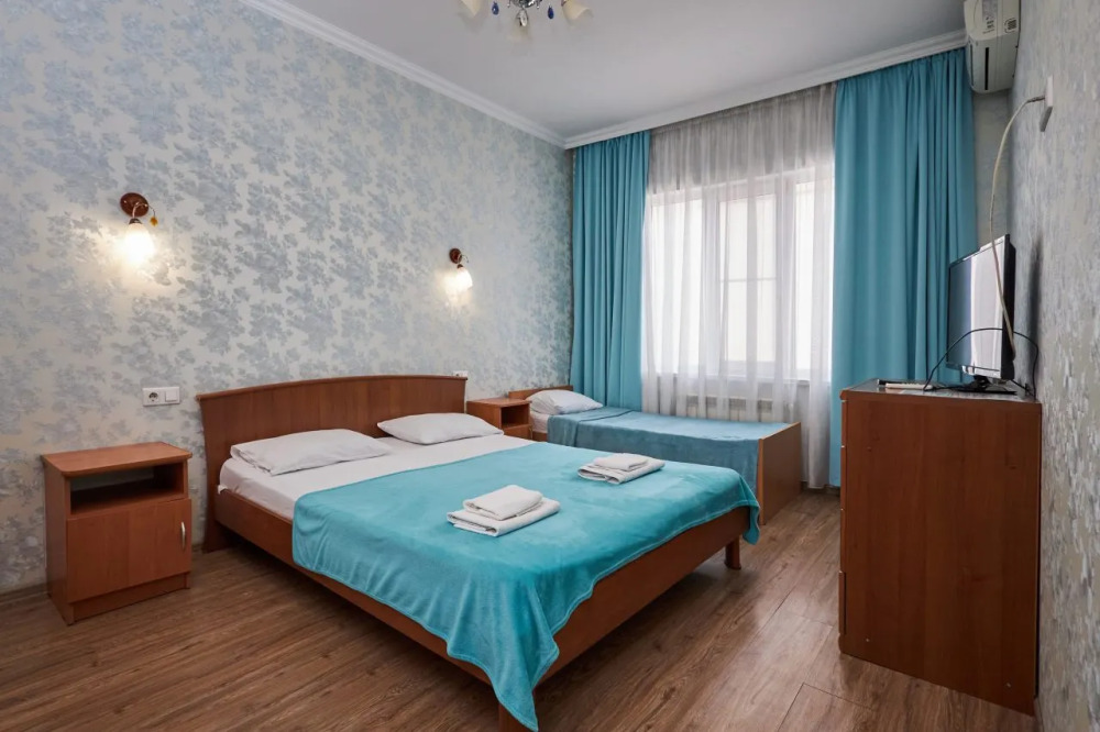 Двухкомнатный семейный номер, оформлен в классическом стиле. В номере имеется все необходимое для удобного время препровождения, включая удобную мебель двуспальную кровать или две раздельные кровати в одной спальне и диван кровать в гостинной, 2 кондиционера, 2 телевизора , холодильник, Wi-Fi, полотенца. Собственная ванная комната.