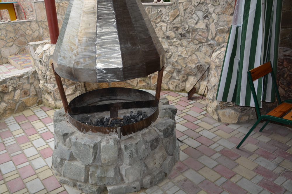 Здесь много зелени, мангал, зеленые террасы.