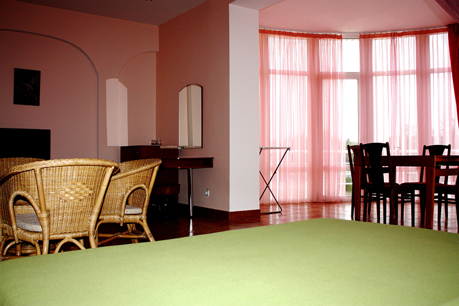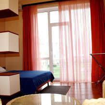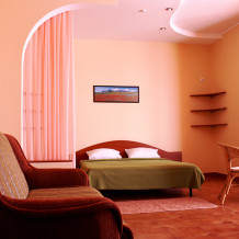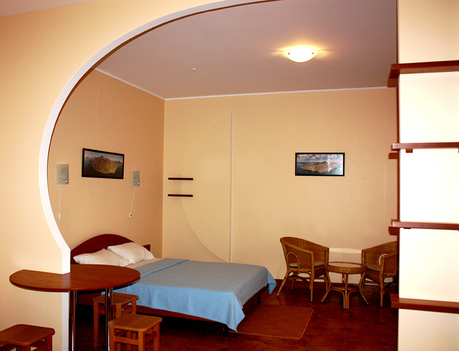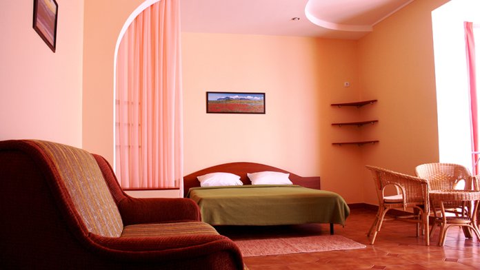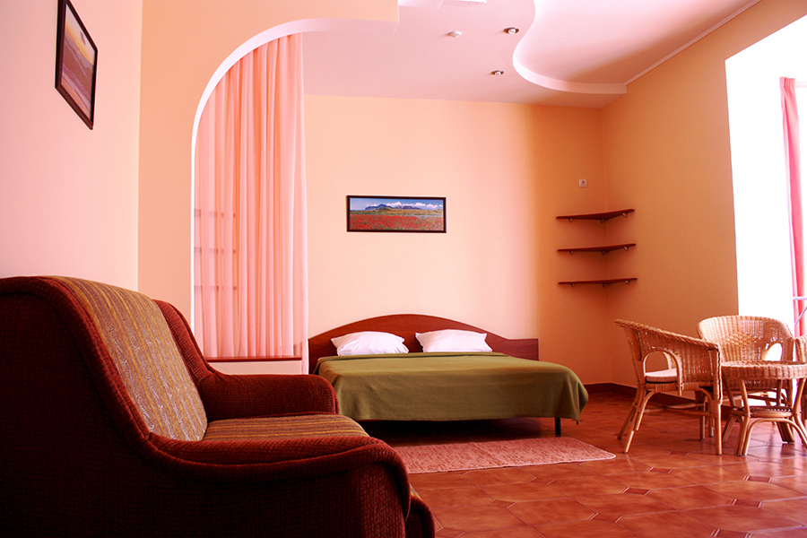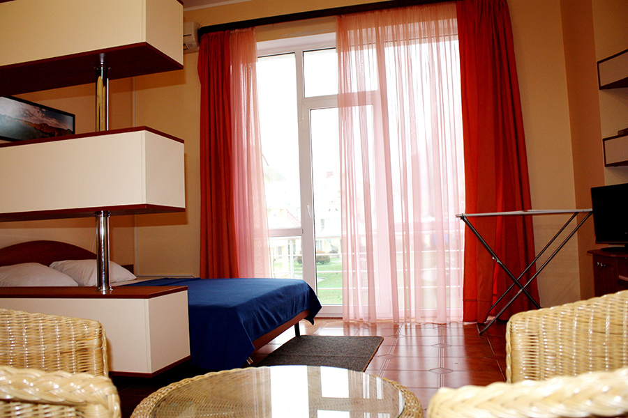 Размещены в трехэтажных корпусах. Призваны обеспечить домашний уют. Это просторные номера с оригинальным дизайнерским решением: одна большая комната, которая разделена на две части: зону отдыха и гостевую.