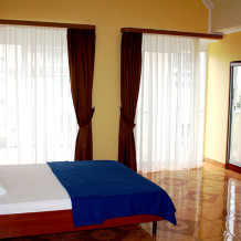 Номера размещены в трехэтажных корпусах. В каждом номере есть свой балкон с видом на сад и территорию отеля.