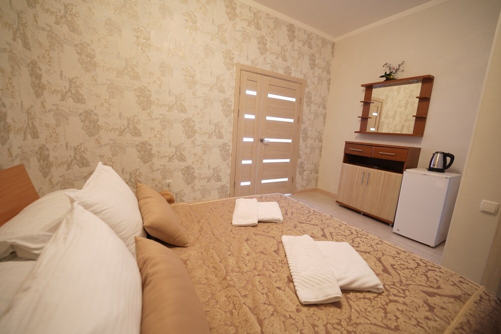 В нашем отеле номера на любой вкус: люкс семейный для большой семьи или компании, люксы и стандарты. Во всех номерах ортопедические матрасы, кондиционеры или сплит система, подогреваемые полы, стабильный Wi-Fi.
