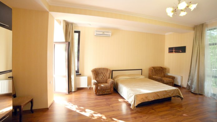 Доступны 4 просторных двухкомнатных номера различной планировки. С выходом на видовую террасу; с балконом и видом на Медведь-гору; с балконом на теневую сторону или не видовой номер с кухней. В каждой комнате этих номеров установлен кондиционер. В каждом номере телевизор, чайник, холодильник, собственная ванная комната. Размещение на двуспальной кровати, раскладном диване, раскладном кресле. Один ребёнок до 7 лет — можно без отдельного спального