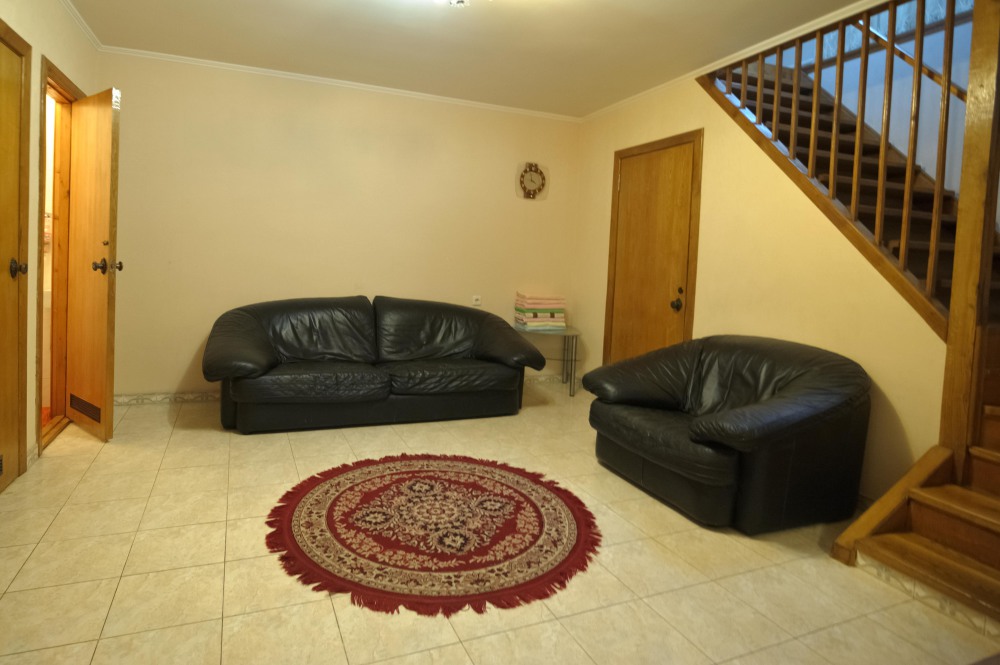 2-й этаж- зал- кухня и 2 спальные комнаты. 3-й этаж - три спальных комнаты и санузел с душем. Комфортно возможно разместить 8 человек (максимально-12).