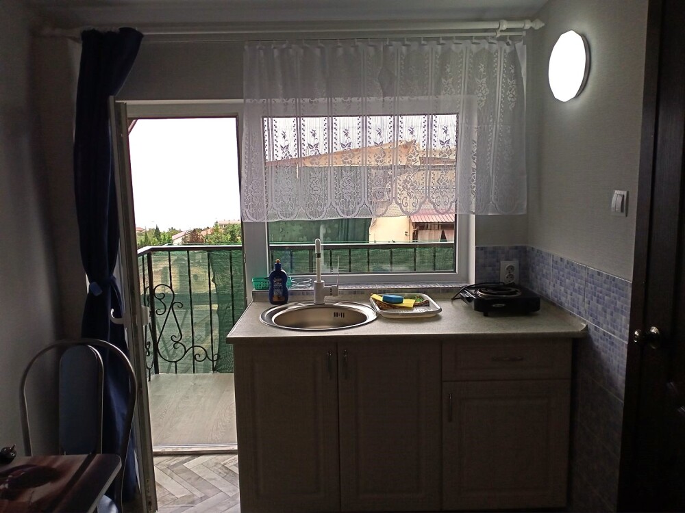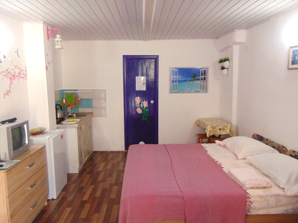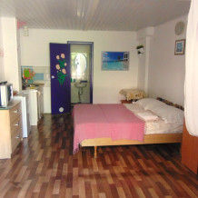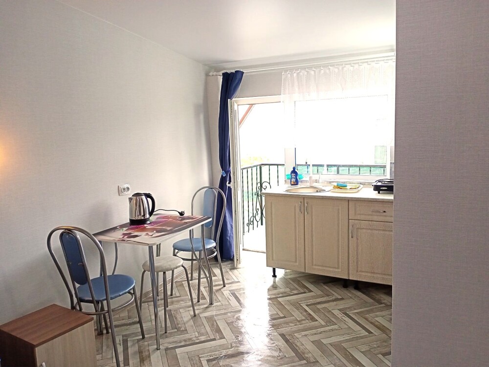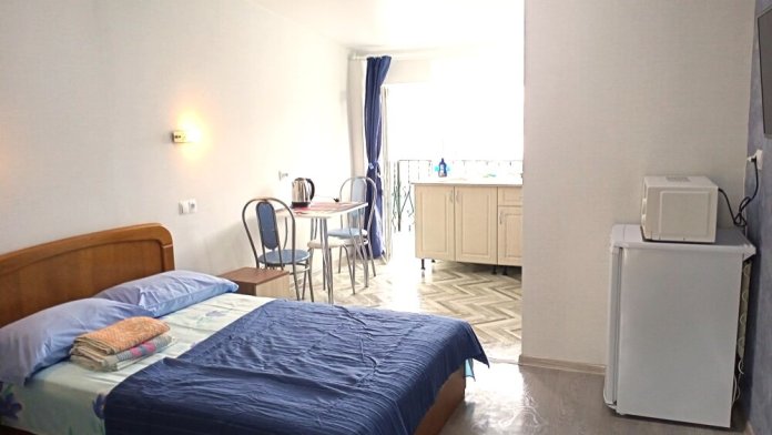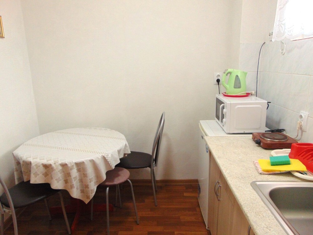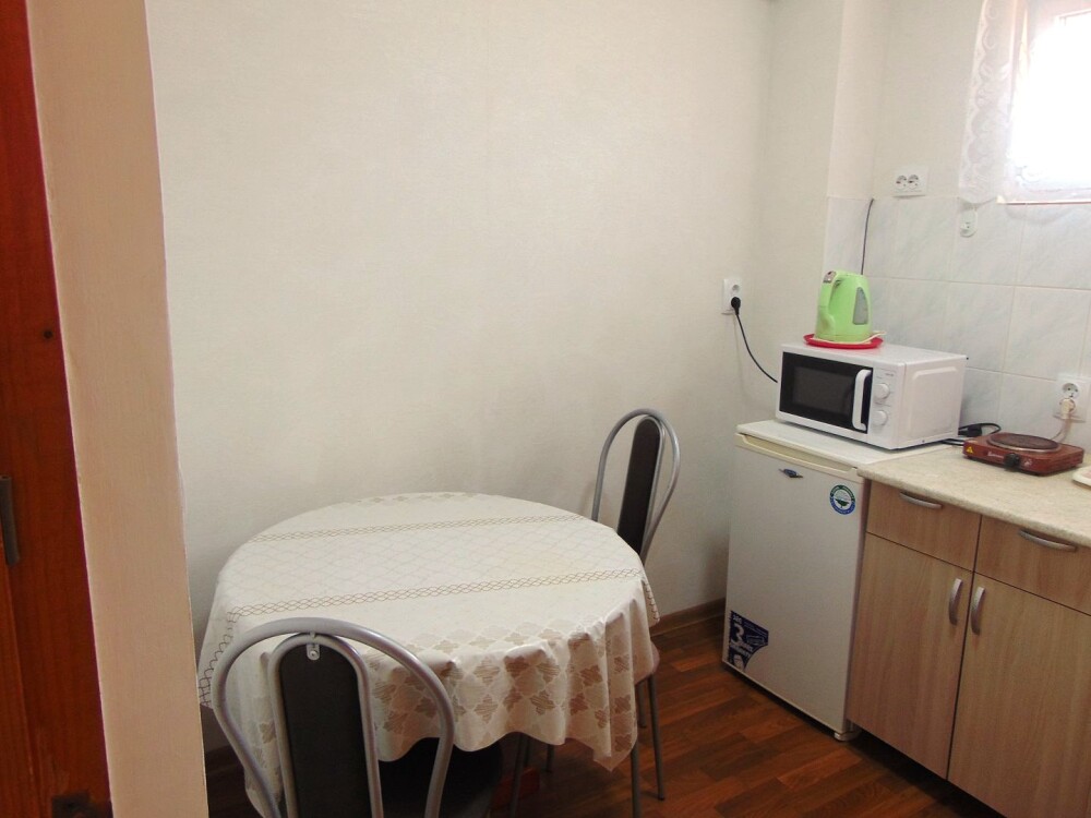 Во всех апартаментах имеется кухня или кухонная зона с набором посуды, эл. чайник, эл. плитка, ТВ, кондиционер, Wi-Fi, холодильник. Индивидуальный санузел с душем и феном.